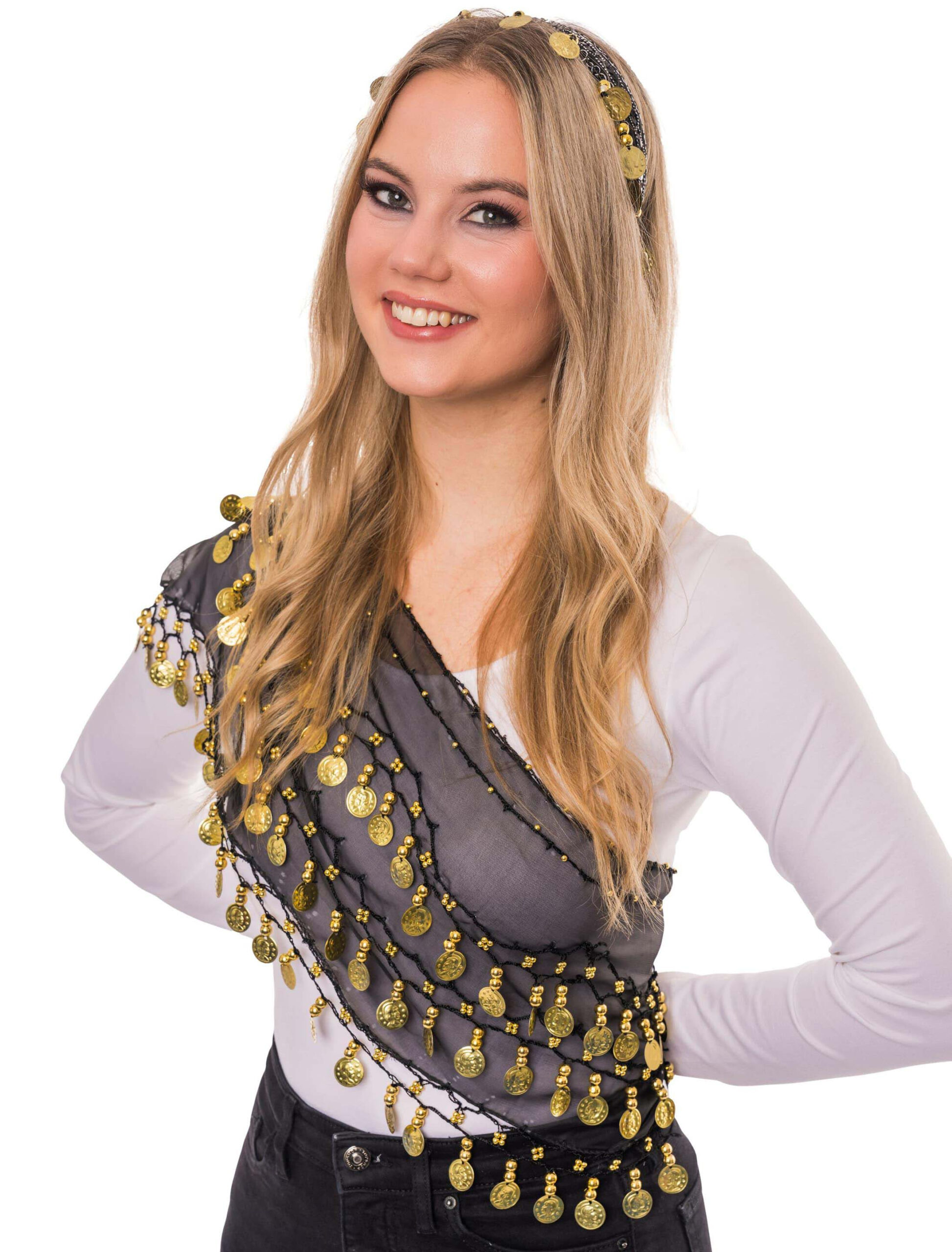 Kostümzubehör Set Wahrsagerin schwarz mit Münzen