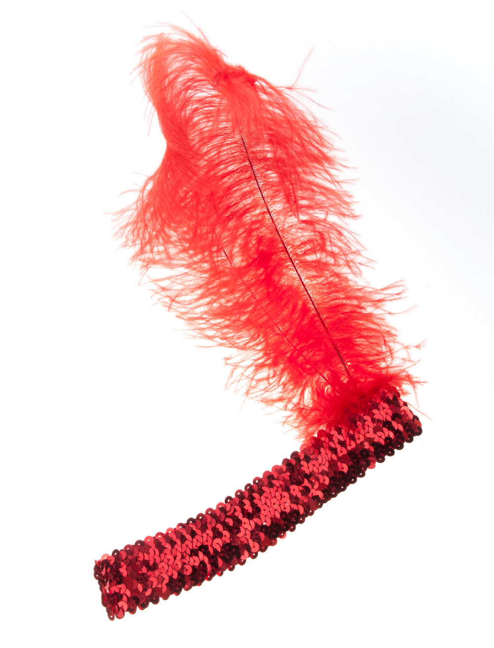 Direkt aus dem Moulin Rouge auf die nächste Party. Zeig den anderen Gästen mit dem Pailletten Stirnband mit Federn in Rot, was ein Showgirl aus dem berühmt berüchtigten Varieté zu bieten hat. Egal, ob feuriger Can-Can oder ein verführerischer Tanz, das Pailletten Stirnband mit Federn in Rot bleibt genau da, wo es sein soll. So kannst Du Dich ganz auf Deinen großen Auftritt vorbereiten und die Blicke aller Männer auf Dich ziehen. Nutze Deine Bühne und genieße den Abend.