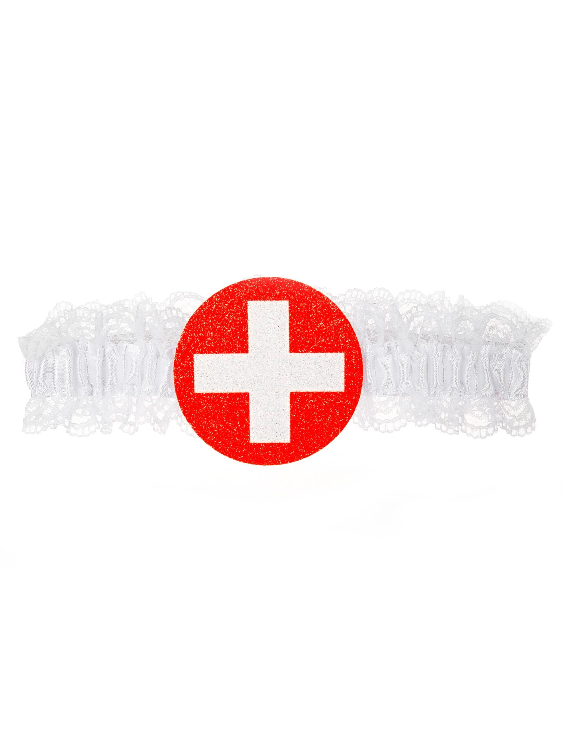 Kostümzubehör Strumpfband Krankenschwester mit Kreuz Farbe: rot/weiß