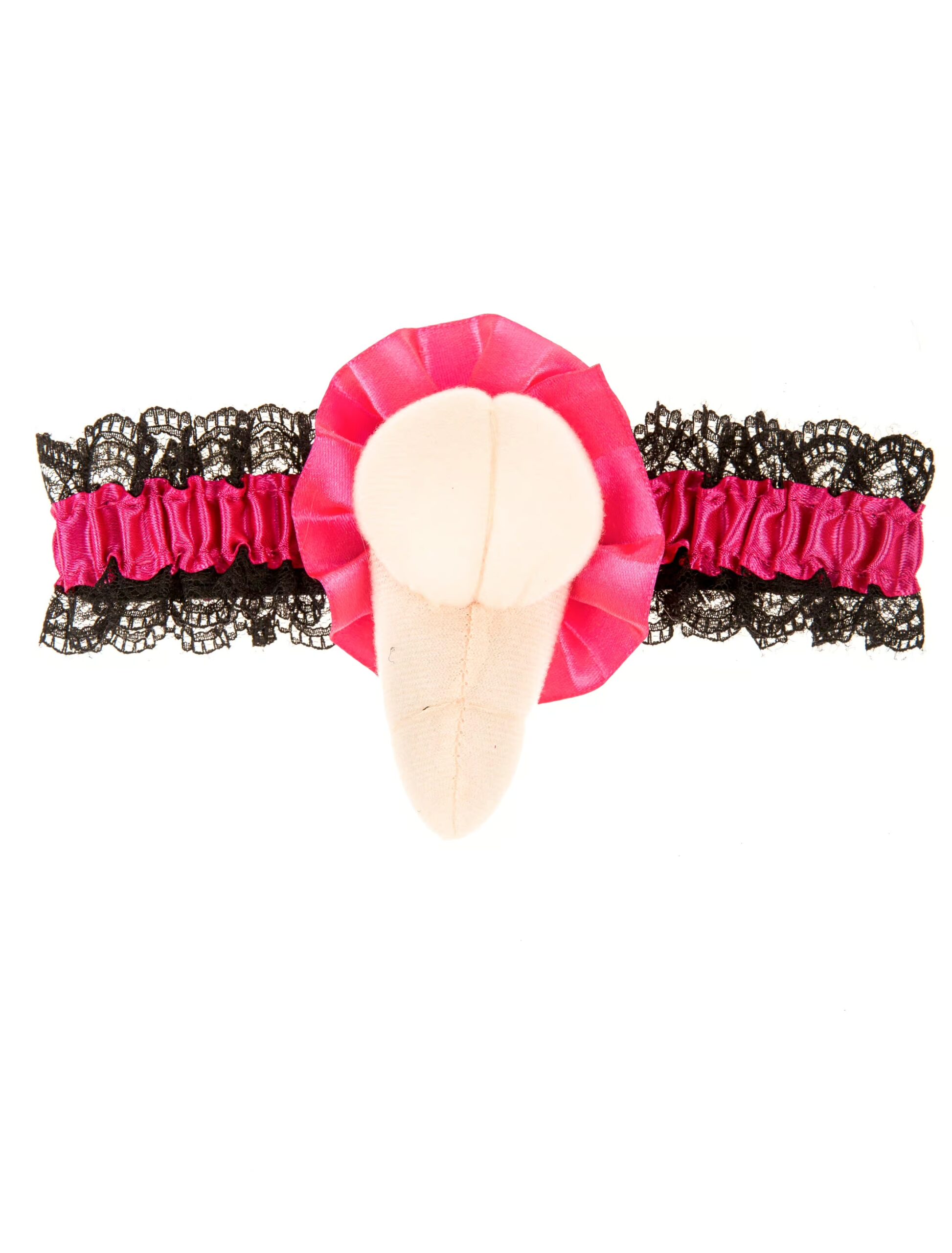 Ihr sucht noch nach einem passenden Accessoire für den Junggesell(inn)en-Abschied (JGA)? Unser schwarz-pinkes Strumpfband Willy darf hier nicht fehlen. Das Strumpfband hat eine Breite von 4 cm. Der Penis hat eine Größe von 9 cm. Dieses schöne Accessoire passt wunderbar zu Deinem Kostüm an Karneval und Fasching. Das Produkt beinhaltet nur ein Strumpfband.
