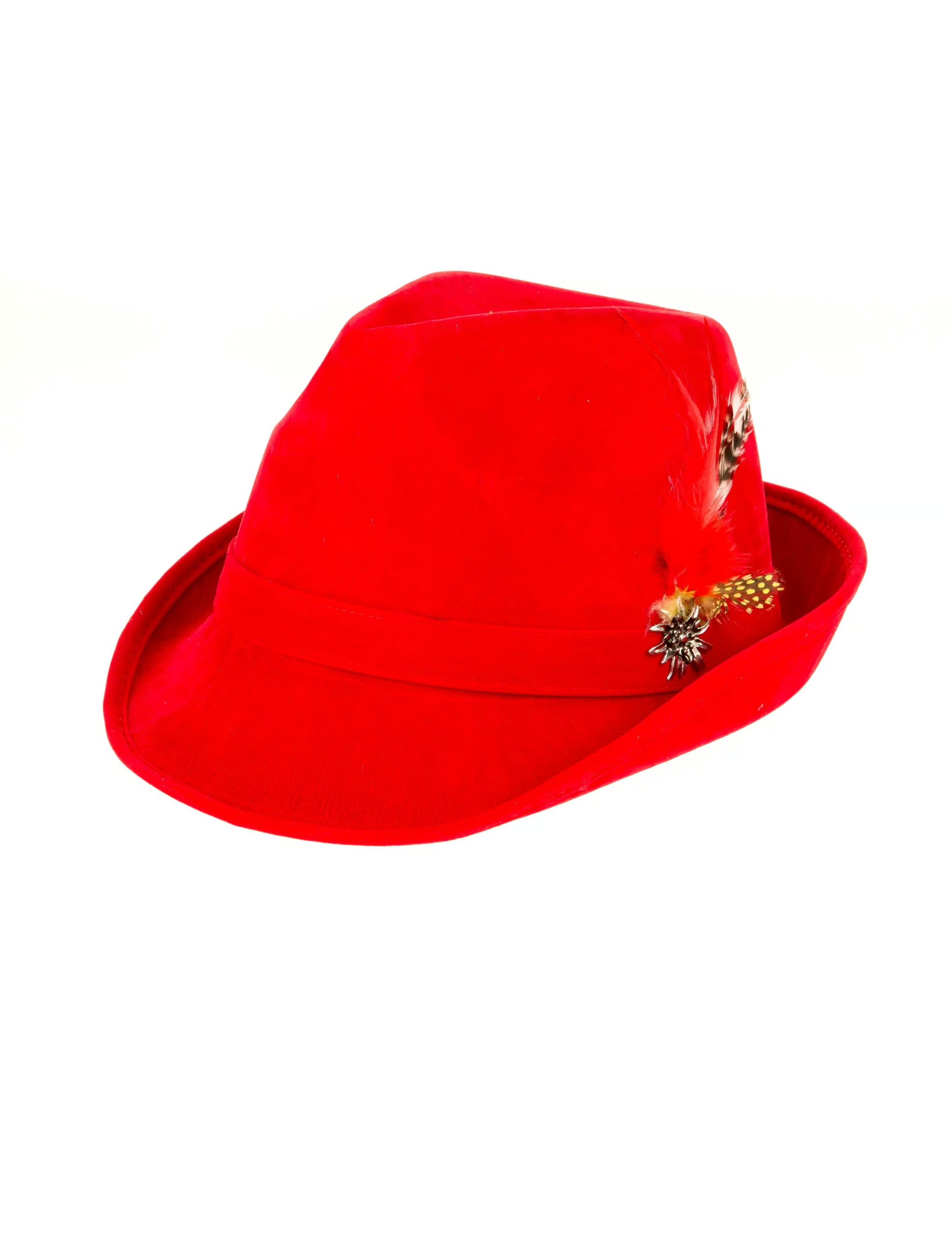 Mit dem Trachtenhut mit Federn in Rot bist Du bestens gerüstet für das kommende Oktoberfest oder die nächste Kostümparty. Kombiniere den Trachtenhut farblich passend zu Deinem Dirndl oder setze einen Kontrast durch das Rot. Die verführerische Farbe des Trachtenhuts mit Federn lenkt die Aufmerksamkeit geschickt auf seine Trägerin und sorgt so für interessierte Blicke. Natürlich kannst Du den Trachtenhut auch zu einer feschen Lederhose tragen und die nächste Mottoparty mächtig aufmotzen.