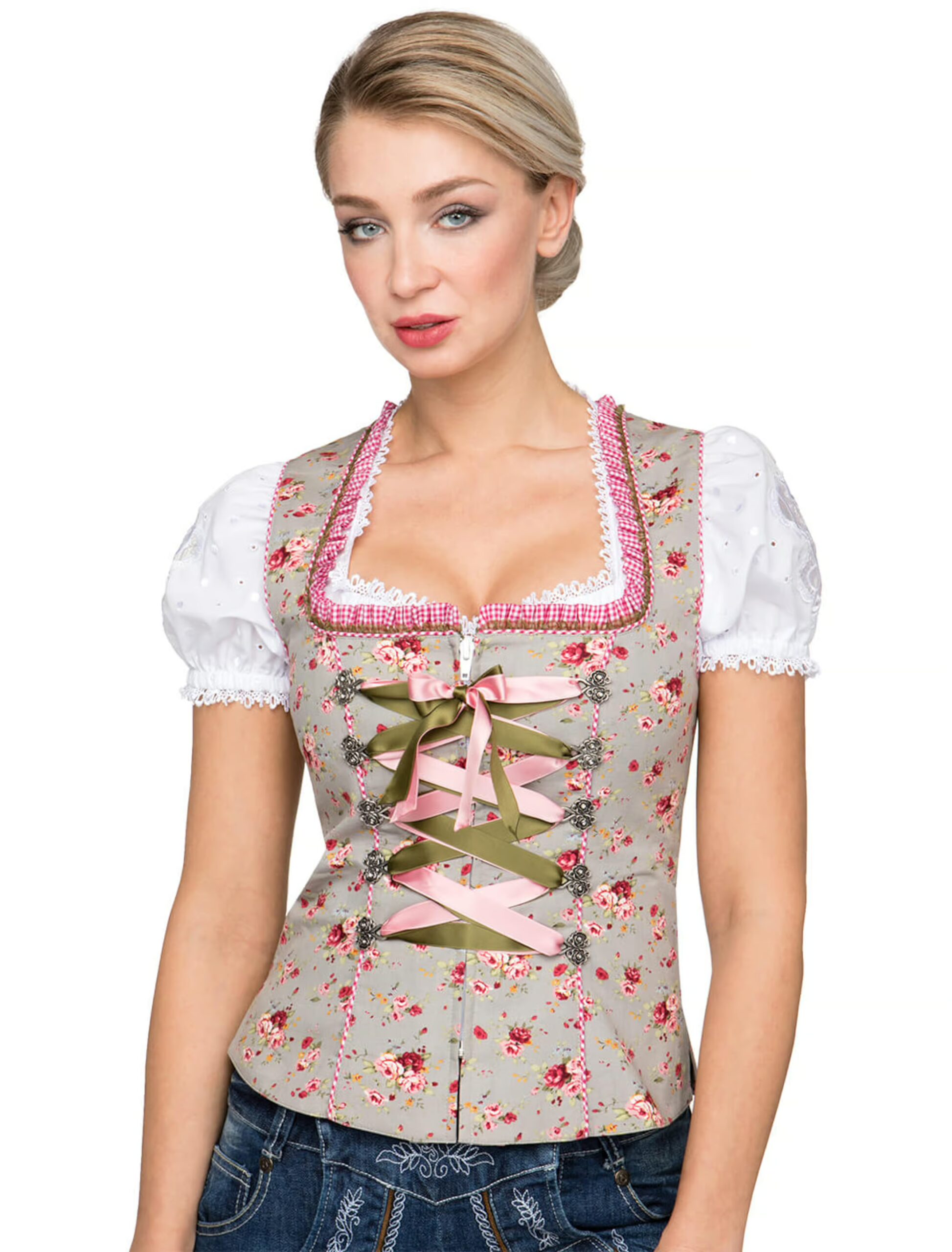 Trendiges Mieder aus Baumwoll-Polyester-Mischung Mit Strasssteinen verziert Mit Miederhaken und farblich angepasste Schnürung aus kontrastfarbigen Satinbändern Abnäher im Rückenteil sorgen für eine feminin-taillierte Passform Reißverschluss in der Front