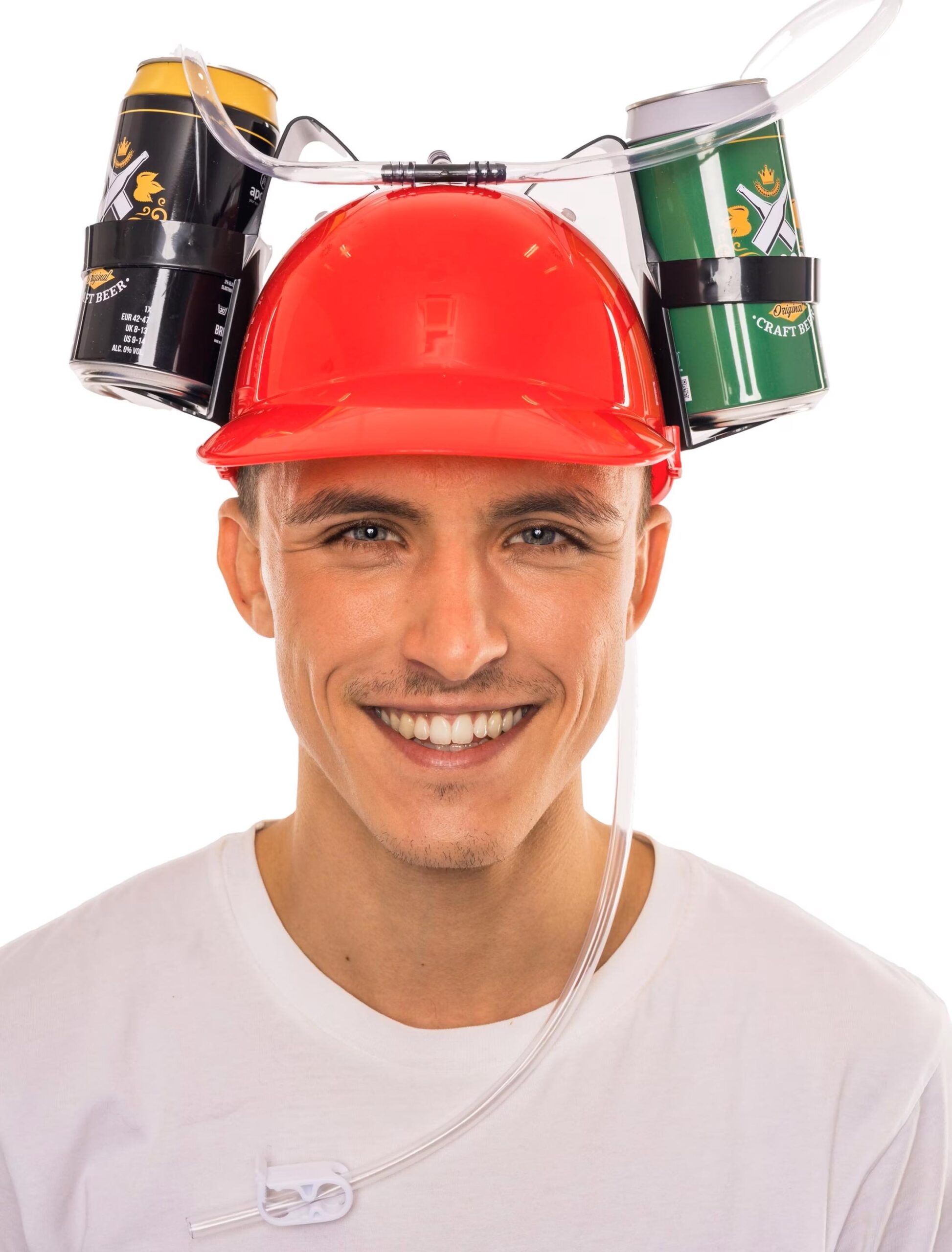 Durst ist bekanntlich schlimmer als Heimweh – aber mit unserem roten Trinkhelm hast du das Problem stylisch gelöst! Zwei Dosen passen locker links und rechts an den Helm, der Schlauch liefert dir die Erfrischung direkt in deinen Mund. Hände frei, Laune hoch – besser geht’s nicht! Egal ob Festival, Karneval, Grillparty oder Couchmarathon: Dieser Helm ist dein treuer Trink-Buddy. Aufsetzen, anzapfen, losfeiern – du bist jetzt offiziell Chef vom Durst!
