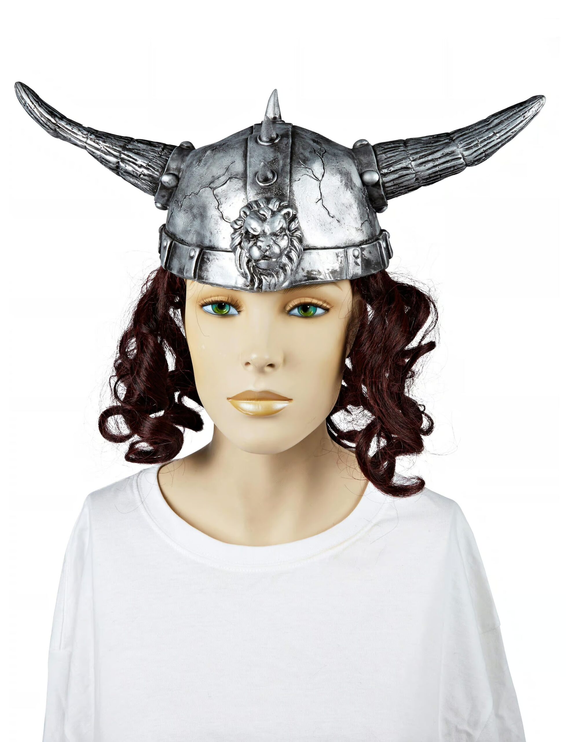 Du bist auf der Suche nach einer passenden Kopfbedeckung für Dein Wikinger Kostüm? Dieser Wikingerhelm aus Latex in Silber ist ein echter Hingucker. Der Wikingerhelm entspricht einem Kopfumfang von bis 60 cm und kann einfach aufgesetzt werden. Die langen Hörner, die mittig gesetzen Spitzen sowie der Löwenkopf in der Front sind ein echter Eyecatcher. Die perfekte Kopfbedeckung für Dein Kostüm als Wikinger zu Karneval und Fasching.