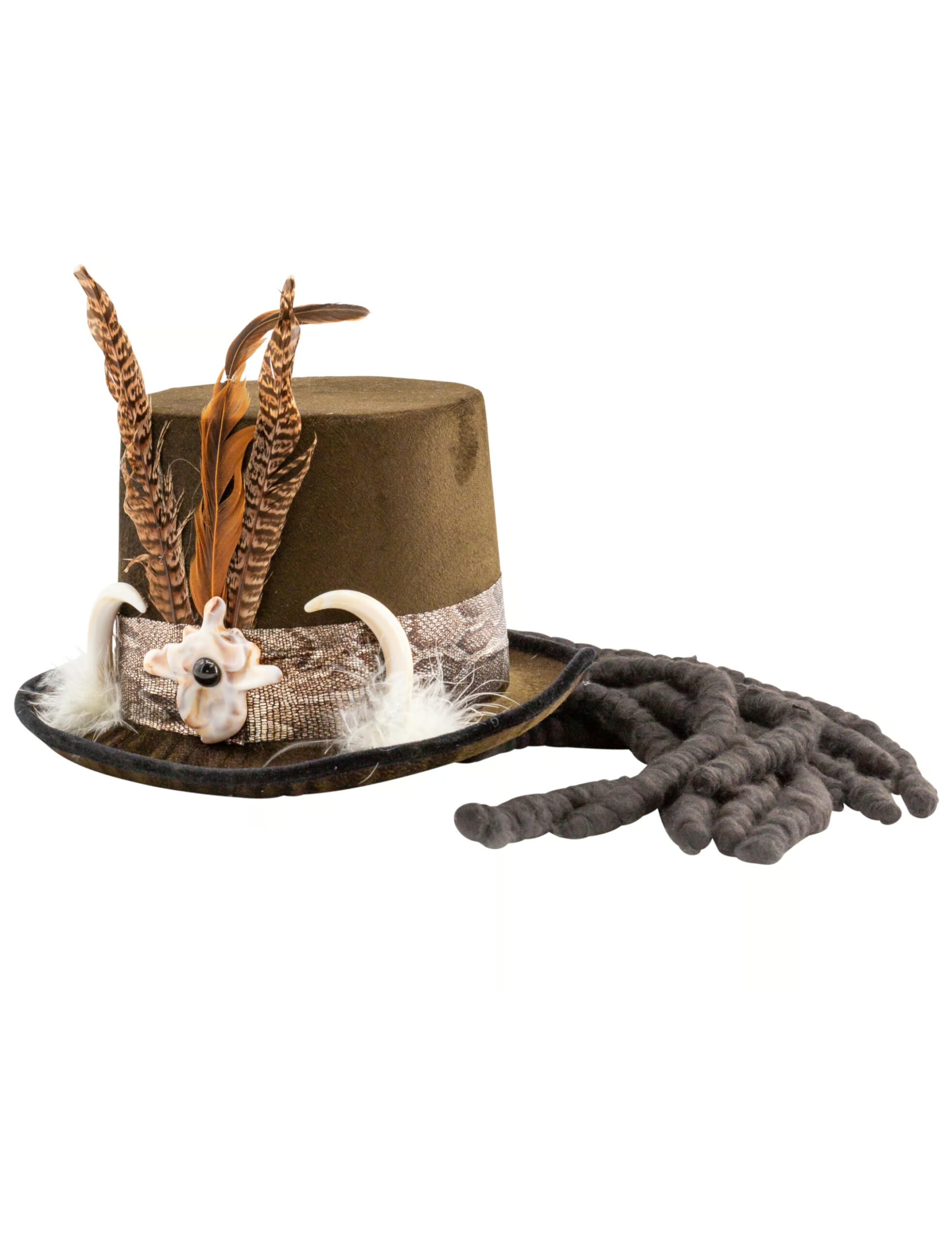 Dieser stilsichere Steampunk Hut mit edlem Hutband, den beiden großen Zähnen, der Brosche in der Front und den langen Dreadlocks ist die perfekte Ergänzung für Dein Steampunk Kostüm. Ob auf Karneval oder auf der kommenden Halloween-Party, dieses Accessoire besticht durch die vielen extravaganten Details, die Dein Kostüm gekonnt abrunden und einzigartig machen.
