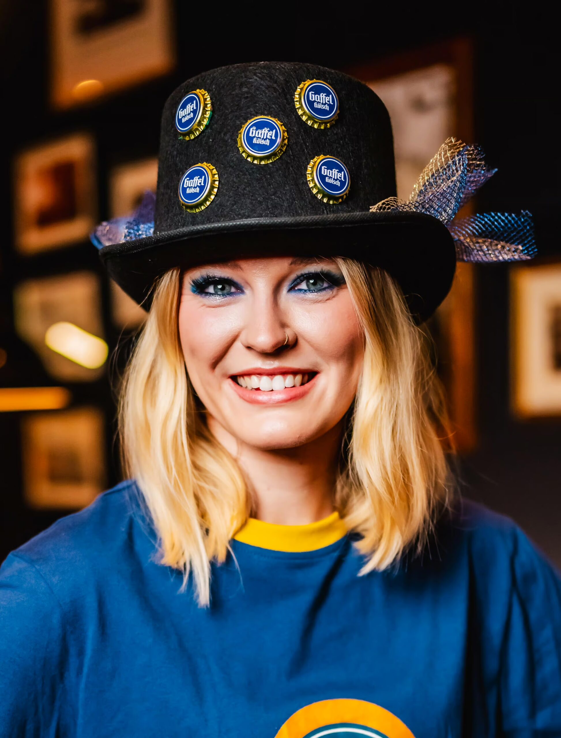 Warum nur Gaffel trinken und nicht auch mal tragen? Dieser stylische Zylinder macht es möglich! Die schwarze Kopfbedeckung ist nicht nur mit vielen Gaffel-Kölsch-Kronkorken verziert, sondern wird auch von goldenen Akzenten und blauem Tüll geschmückt. Das perfekte Accessoires für jede Karnevals- und Mottoparty in der Domstadt!