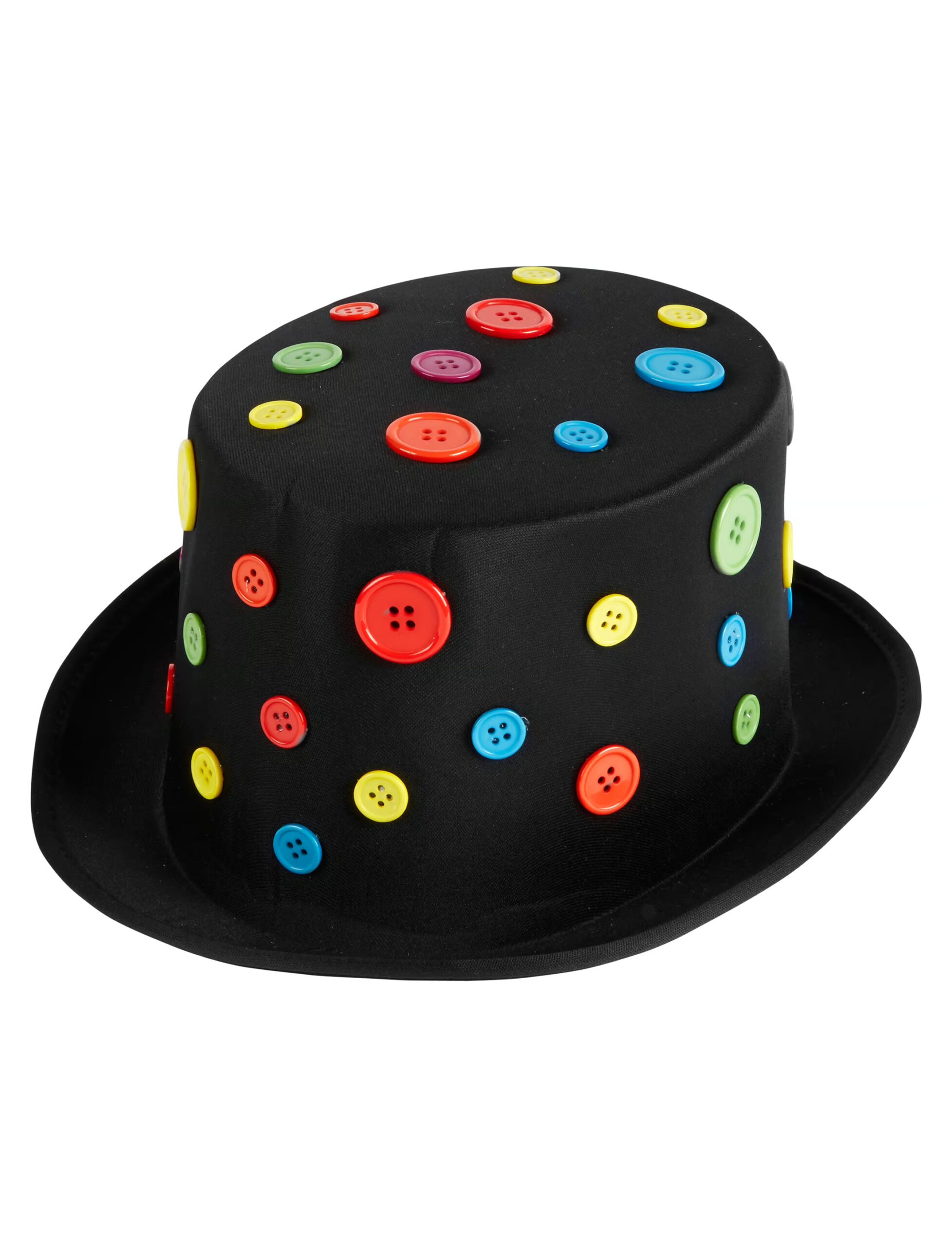 Kostümzubehör Zylinder mit bunten Knöpfen Farbe: schwarz