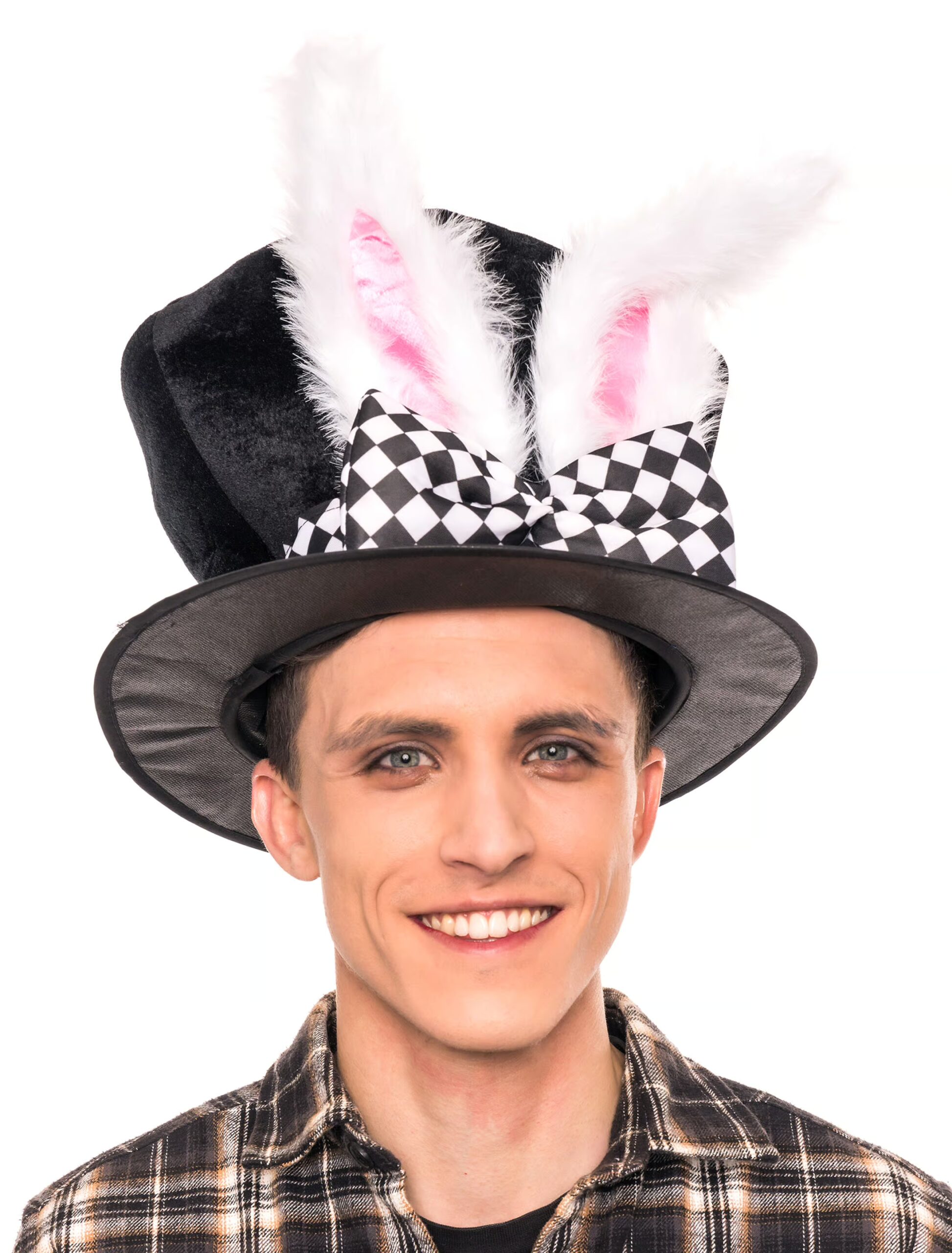 Zylinder mit Hasenohren schwarz/weiß one size, ideal für Karneval & Fasching