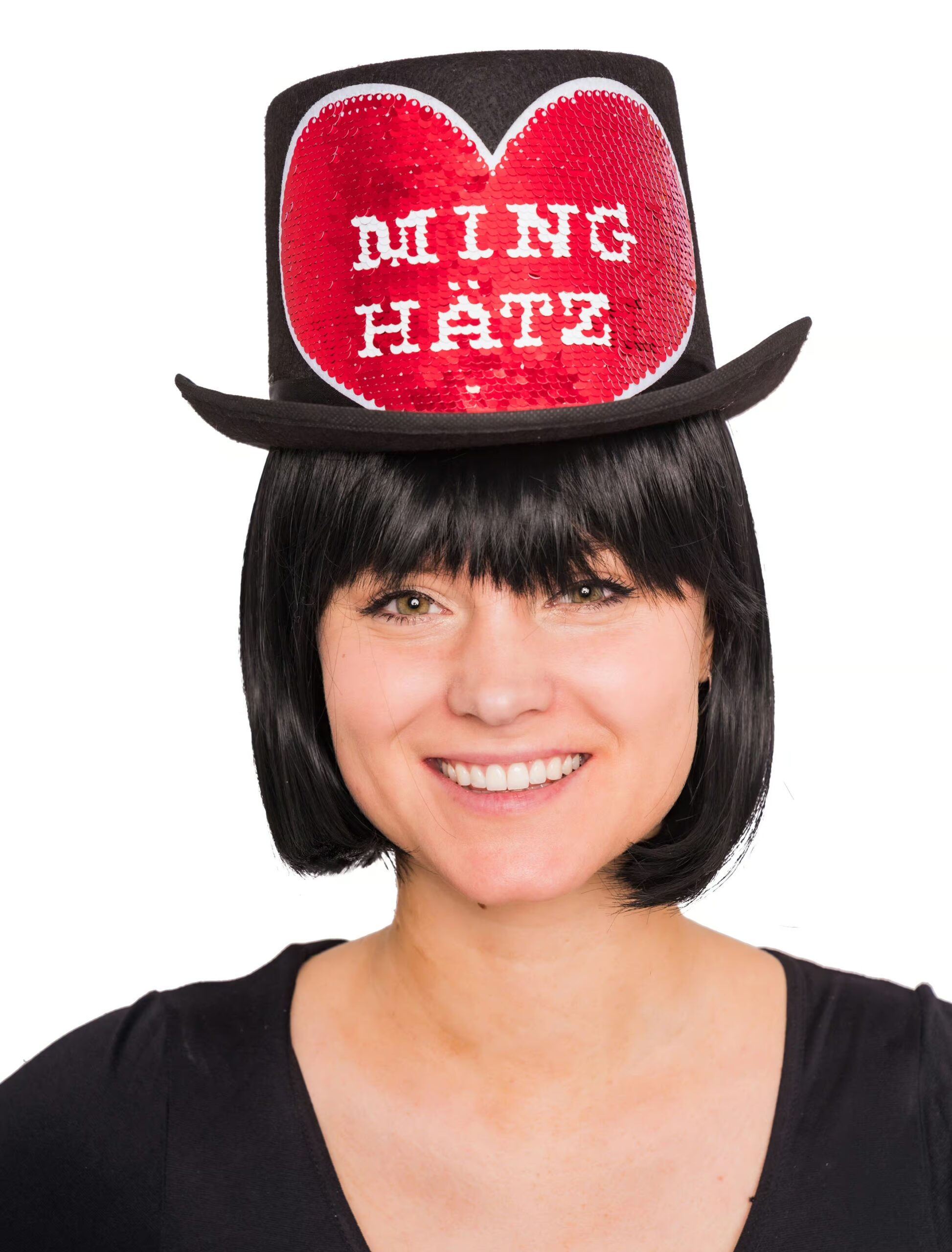 Du bist so stolz auf Dein Veedel und würdest das am liebsten allen mitteilen? Mit diesem hübschen Zylinder ist nichts leichter als das. Denn die schwarze Kopfbedeckung für Herren und Damen wird in der Front von einem rot-weißen Wende-Pailletten-Herz geziert, welches die Aufschrift MING VEEDEL oder MING HÄTZ trägt (je nachdem, welche der Wende-Pailletten Du wählst). Eine Hommage an Deine Lieblingsstadt und vor allem an Dein geliebtes Veedel!