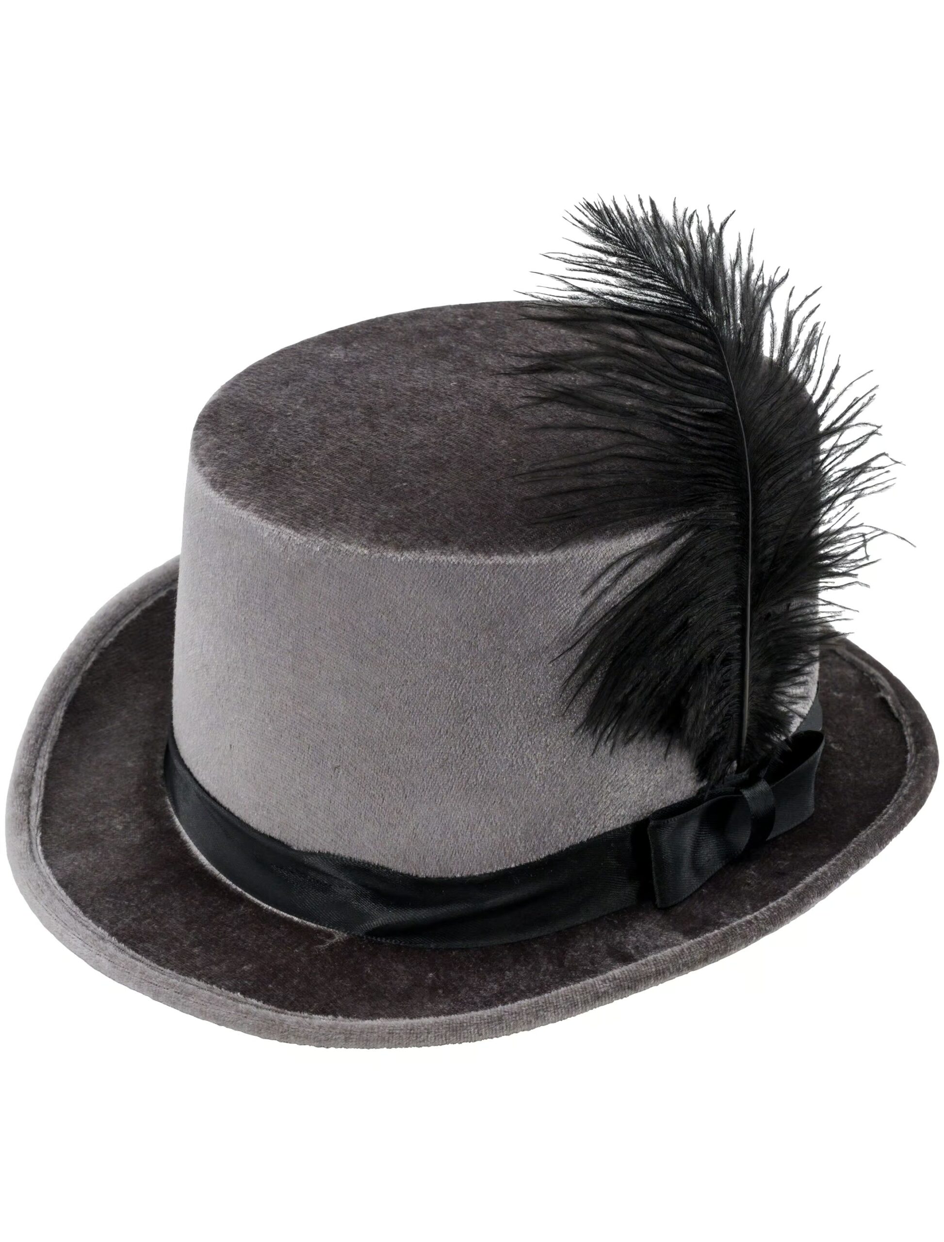 Diese elegante Kopfbedeckung ist eine besonders schicke Ergänzung für Dein Party-Outfit! Der mittelhohe Zylinder ist in edler Samt-Optik gefertigt und mit einem schwarzen Hutband mit echter Feder verziert. Damit gibst Du Deinem Kostüm den letzten Schliff!