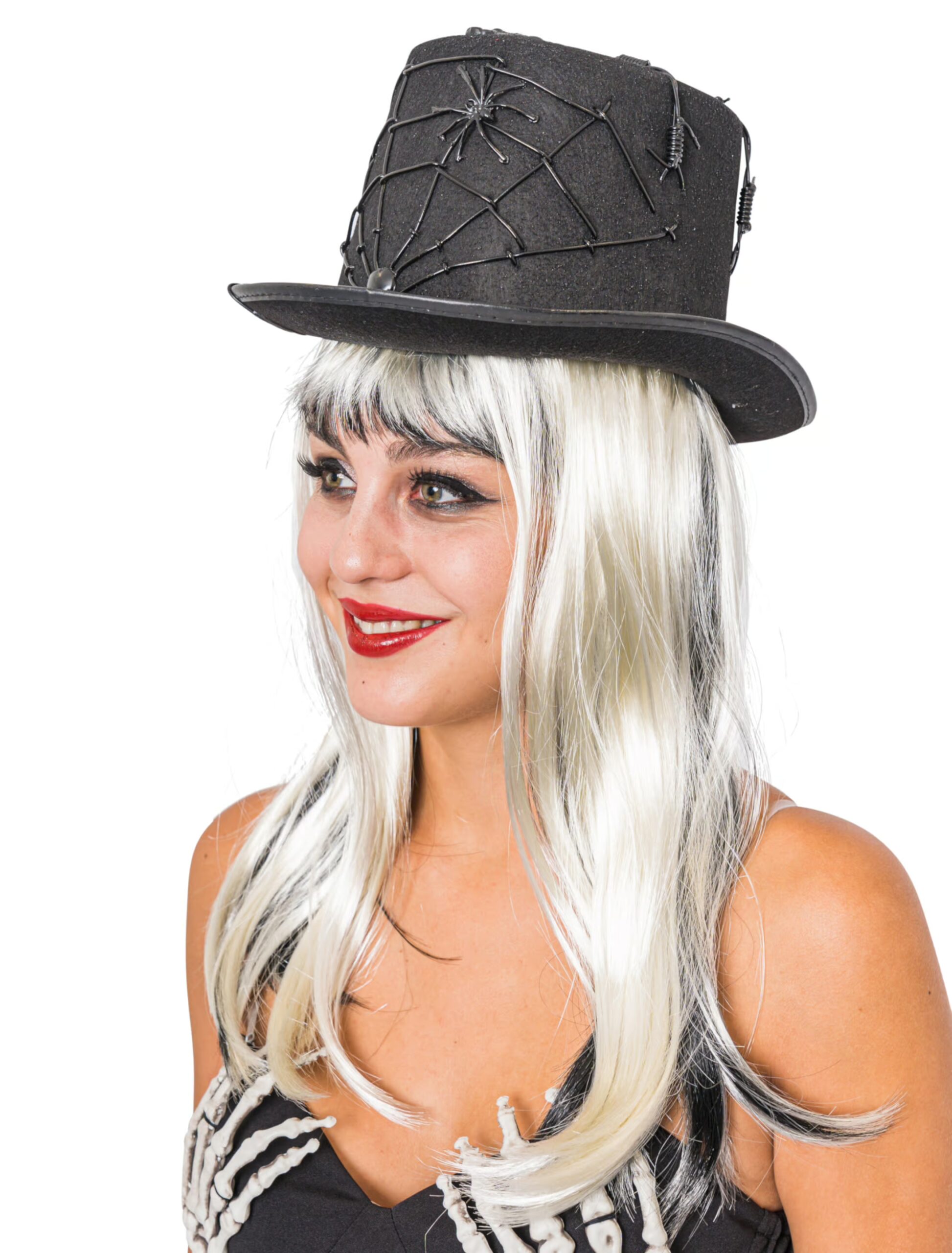 Kostümzubehör Zylinder schwarz mit Spinnennetz schwarz