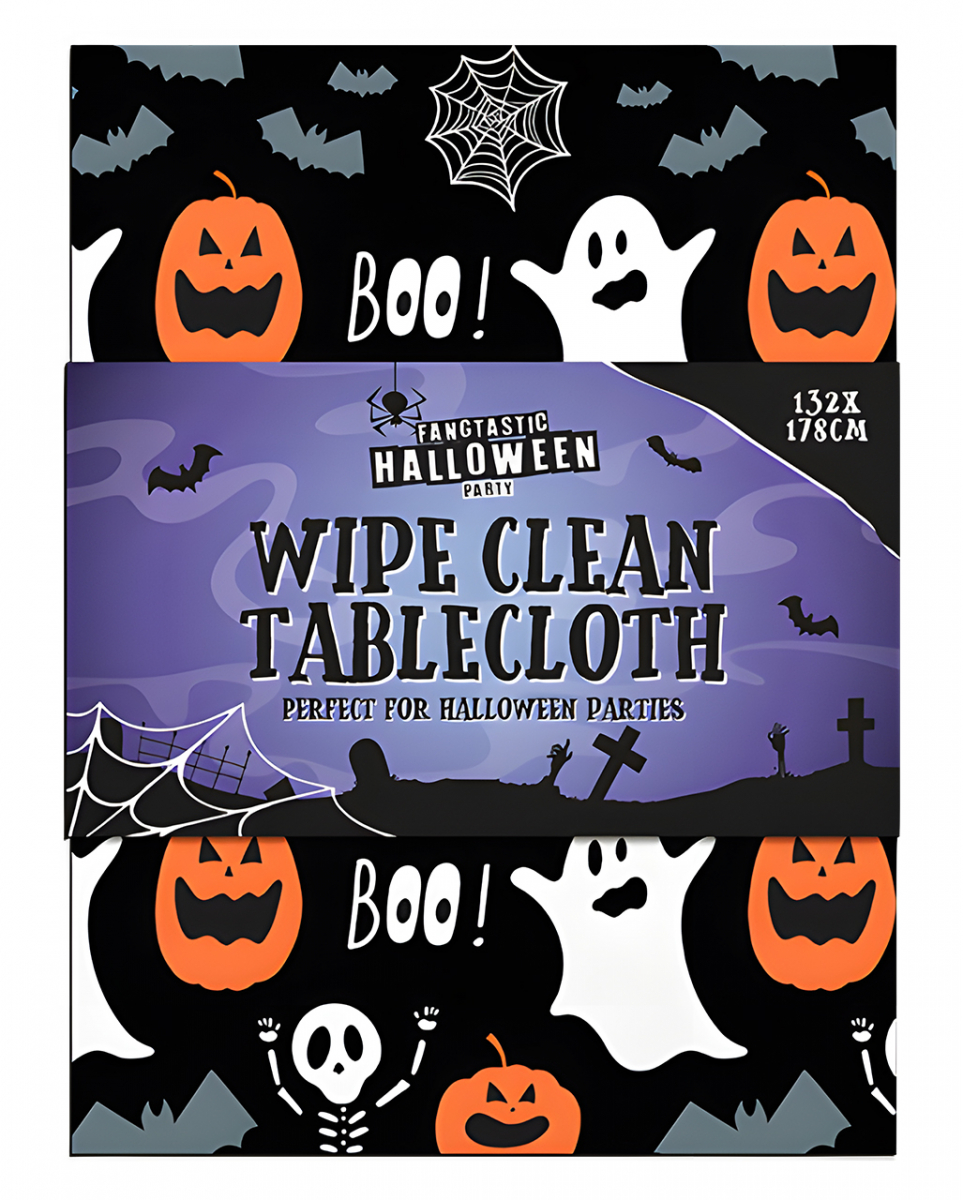Halloween Motive Kürbis Geist und Skelett Tischdecke 132x178cm Kinderfreundliche Halloween Tischdeko in schwarz mit witzigen Halloween Motiven Mit der Halloween Motive Kürbis Geist und Skelett Tischdecke wird deine Party zum perfekt dekorierten Highlight. Erschaffe eine unvergessliche Atmosphäre für kleine und große Gruselfans und verleihe deinem Event den perfekten Touch des Schreckens. Die Halloween Motive Kürbis Geist und Skelett Tischdecke ist ca. 132 x 178 cm groß und aus PEVA-Material. Dadurch ist sie wasserabweisend und leicht abwischbar. Mit dieser Tischdecke wird dein Buffet oder deine Halloween-Tafel zum Blickfang der Party. Lieferumfang: 1 x Halloween Motive Kürbis Geist und Skelett Tischdecke Farbe: Schwarz, Weiß, Orange, Grau Größe: ca. 132 x 178 cm Material: PEVA Spooky Tischdeko mit klassischen Halloween Motiven Geister, Spinnweben, Skelette, Kürbisse und Fledermäuse für dein Buffet und Halloween Tafel Kinderfreundliche Tisch Dekoration für Halloween Von Feuer und offenen Flammen fernhalten.