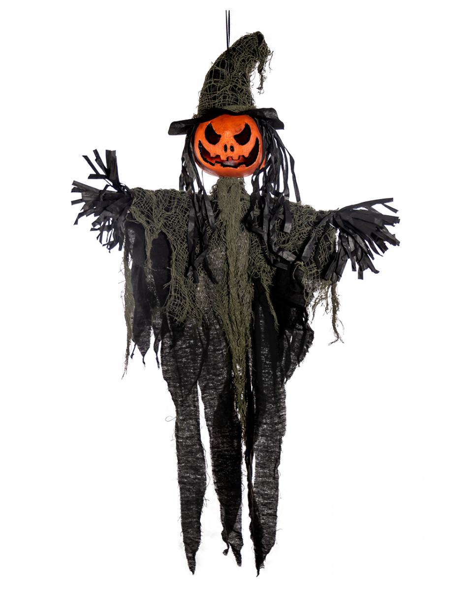 Kürbiskopf Vogelscheuche mit LED Beleuchtung 90 cm als Halloween Deko Halloween Hängefigur mit biegsamen Armen als schaurige Trick or Treat Begrüßung Die Kürbiskopf Vogelscheuche mit LED Beleuchtung sorgt für das perfekte Trick or Treat Ambiente! Sein orangefarbenes Gesicht hebt sich von der dunklen zerlumpten Kleidung ab. Damit ist der Kerl absolut stilsicher, was das perfekte Grusel-Outfit angeht. Holt euch die Kürbiskopf Vogelscheuche mit LED Beleuchtung ins Haus. Mit der angebrachten Schlaufe lässt sich die Hägefigur leicht an einem Haken oder Kleiderbügel aufhängen. Sie ist batteriebetrieben und kann per Knopfdruck in Betrieb genommen werden. Lieferumfang: 1 x Kürbiskopf Vogelscheuche mit LED Beleuchtung 90cm Farbe: Schwarz, Grau, Orange Größe: ca. 90 x 69 x 12 cm Material: Polyester, Kunststoff Batterien: benötigt 3 x LR44 Knopfzellen, nicht inkl. Halloween Hängefigur mit Lichteffekt Kürbiskopf der Vogelscheuche leuchtet Biegsame Arme, zum flexiblen Dekorieren Für Innen- und überdachten Außenbereich Der Artikel ist ein Deko Artikel und kein Spielzeug. Nicht für Kinder unter 3 Jahren geeignet. Kann Kleinteile enthalten, die verschluckt werden können – Erstickungsgefahr. Von Feuer und offenen Flammen fernhalten.