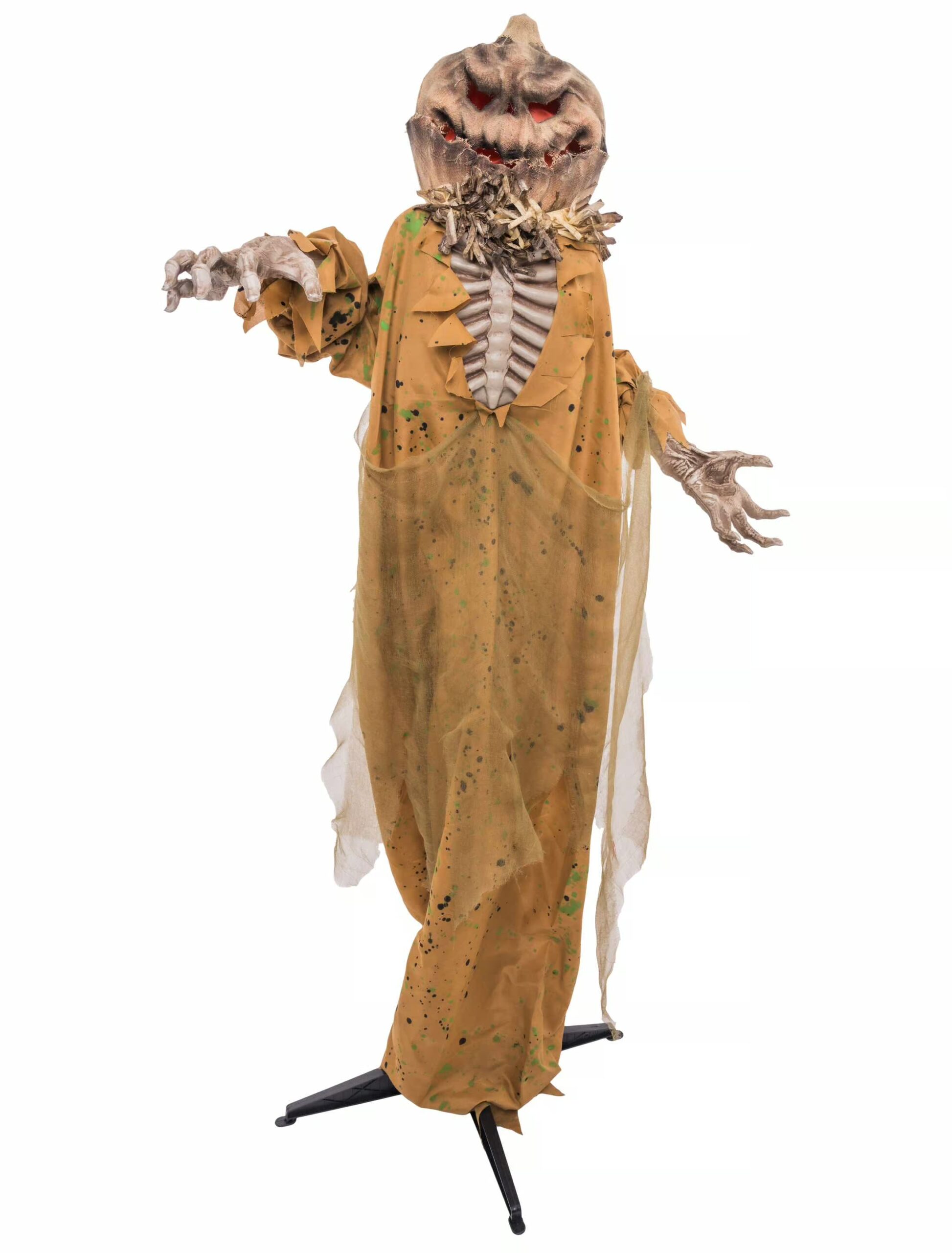Dein neuer gruseliger Mitbewohner! Mit unserem 1,7m großen Kürbismann bringst du Leben in deine Deko. Dieser düstere Herr ist nicht nur beeindruckend groß, sondern sein Kürbiskopf ist auch beweglich! Ob auf der Terrasse, im Garten oder mitten in deinem Wohnzimmer – der Kürbismann sorgt überall für den Grusel-Effekt. Er ist der perfekte Gastgeber für deine Halloween-Party: still, unheimlich und immer mit einem Lächeln!