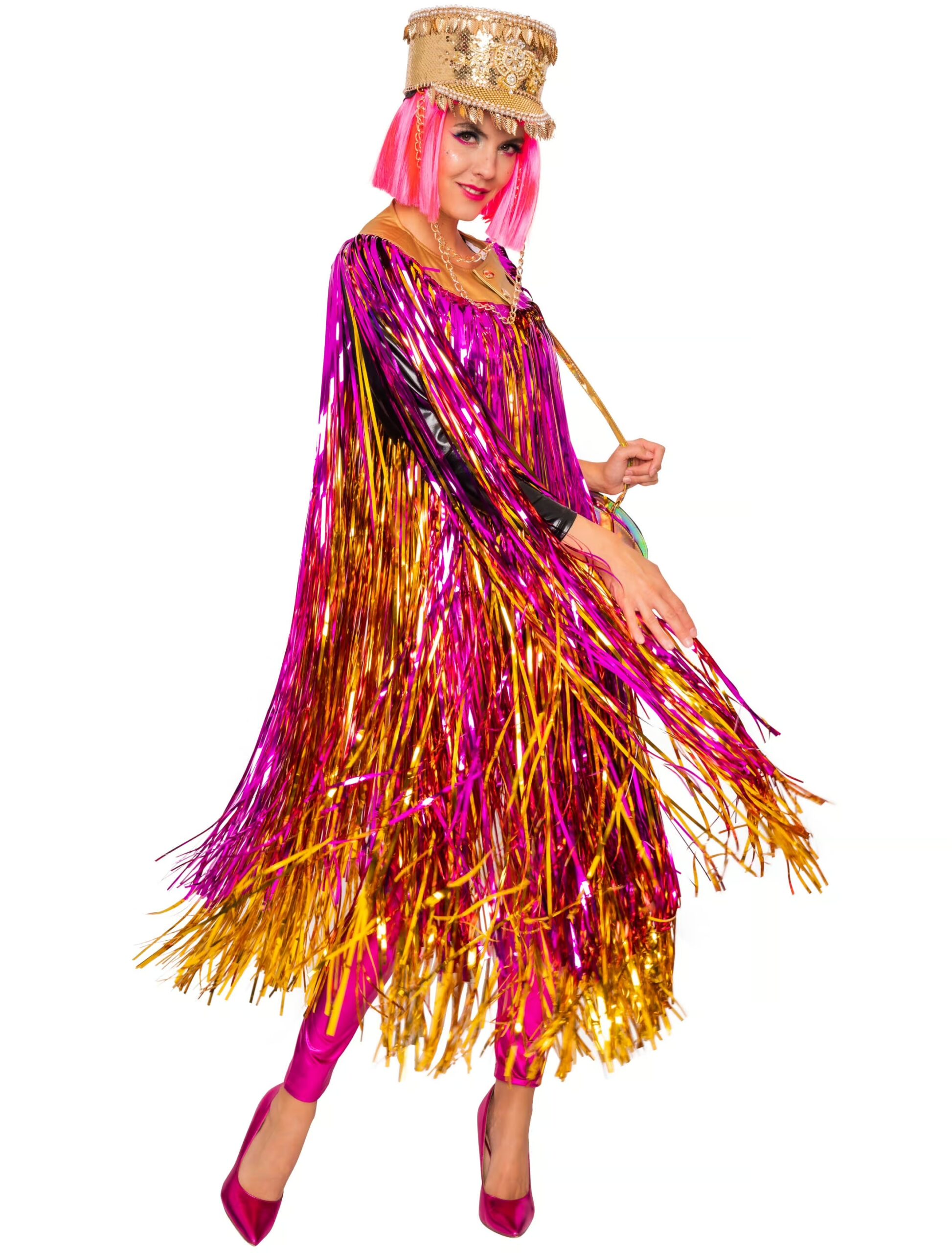 Mit unserem Lamettaumhang in Pink fällst Du auf der nächsten Kostümparty garantiert auf, denn angesichts des bunten Treibens ist das gar nicht so einfach. Die Jacke mit Knöpfen besteht aus mehreren Lagen Lametta, die für den charakteristischen Look sorgen, den bestimmt niemand so schnell wieder vergisst. Mit dieser wundervollen Jacke peppst Du Dein schlichtes Kostüm auf oder kreierst Deinen eigenen Look, nach dem sich jeder nicht nur einmal umsieht.
