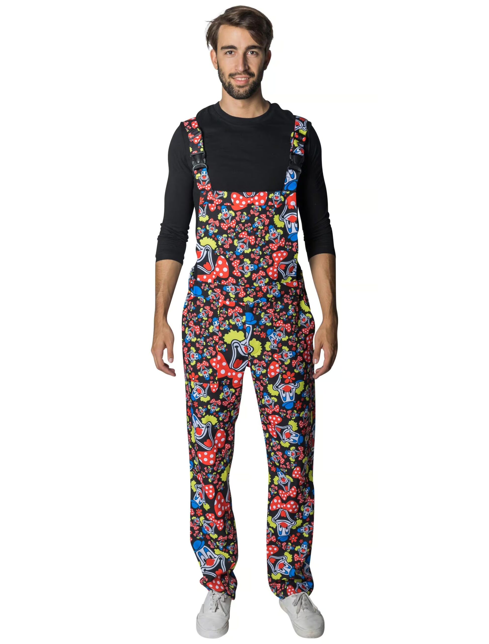 Langweilige Latzhosen sind Schnee von gestern! Schlüpf´ in diese bequeme schwarze Latzhose und lass’ Dich vom fröhlich-lustigen Clown-Motiv anstecken. Die schwarze Latzhose Clown hat zwei seitliche und zwei hintere Eingrifftaschen und zwei praktische Clip-Schnallen im Brustbereich. Durch die Schnallen lässt sich die Größe der Latzhose individuell anpassen und ist somit für jeden Figur-Typ geeignet. Die Latzhose besitzt vorne einen Reißverschluss. Das Muster dieses Kostüms besteht aus lauter lachenden Clown-Gesichtern. Die dominierenden Farben sind rot, weiß, gelb und blau. Mit diesem tollen Clown Kostüm bist Du der Mittelpunkt auf jeder Faschingsparty. Wie wäre es dazu mit einer bunten und schrillen Perücke oder anderen Accessoires? Dieses Kostüm macht schon beim Anblick Spaß – wie muss es dann erst beim Tragen sein?