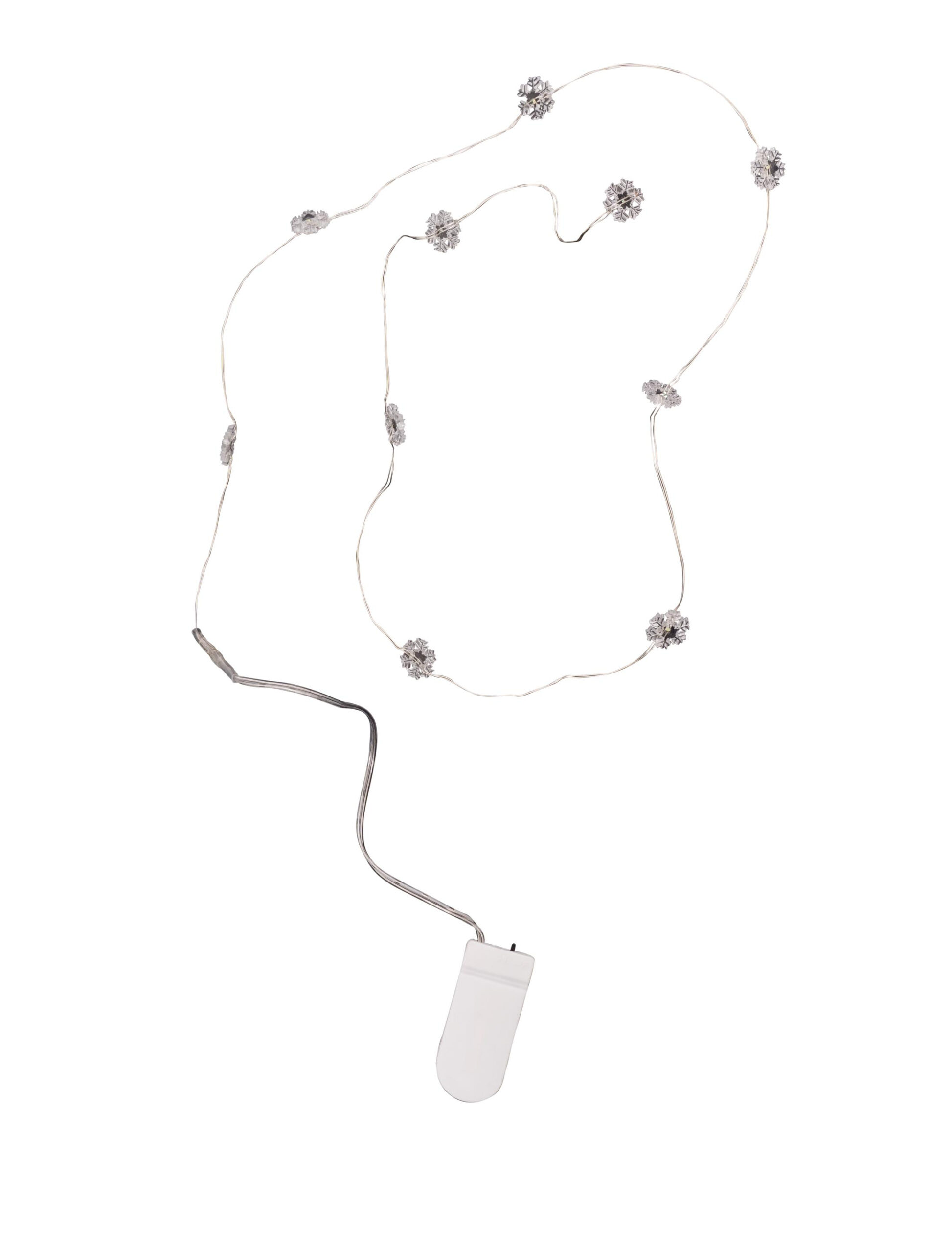 Diese süße Lichterkette bringt Abwechslung in Deine Dekoration. Durch den sehr biegsamen Draht kannst Du sie an vielen Orten anbringen und winterliche Stimmung zaubern. Sie macht sich aber nicht nur sehr schön in Deinem Regal, sondern auch in einem Kostüm. Schmück auf der Weihnachts Mottoparty doch einfach Dein Outfit mit der flexiblen Schneeflocken Lichterkette! Das Produkt beinhaltet nur eine Mini-Lichterkette mit einem Ein- und Ausschalter. Micro-Lichterkette. Kleiner Tipp: Da die Lichterkette durch das Draht sehr flexibel ist, kannst Du sie ganz einfach um ein Geweih, einen Zauberstab oder sonstigen Zubehörteilen umwickeln. So machst Du Dein Kostüm zu etwas ganz Besonderem.