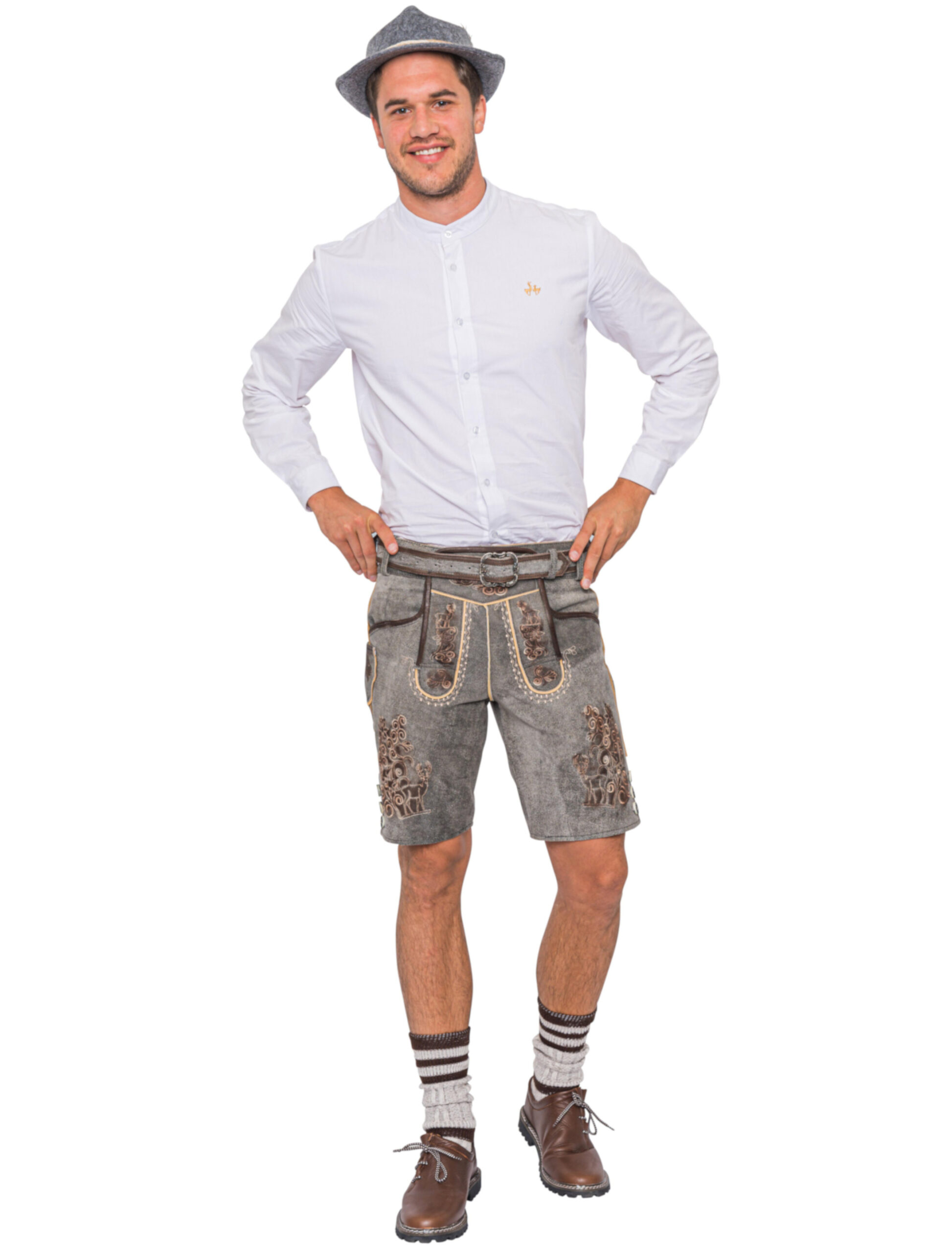 Diese Lederhose wird Dich zu einem echten Bayer werden lassen. Die Lederhose Uli ist kurz geschnitten und ist aus echtem Rindsleder hergestellt. Die hellgraue Farbe setzt einen Akzent, da Du Dich mit dieser Hose von der breiten Partymasse abheben wirst. Die Farbe ist so individuell wie die Stickereien auf dem Leder. Diese sind filigran und detailverliebt gearbeitet. Ebenfalls enthalten ist ein passender Gürtel. Dieser ist verstellbar und garantiert Dir einen angenehmen Tragekomfort, der Dich weder beim Bier trinken noch beim Tanzen einschränken wird.
