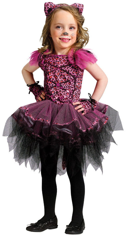 Kleinkinder Kostüm Leo Ballerina Traumhafte Ballerina im Leoparden Look Das Ballett Kostüm einer Ballerina ist ein Einteiler im pinken Leoparden-Look gehalten und besitzt  ein großes Tutu aus schwarzem und rosa Tüll, einem Leopardenschwanz mit Klettverschluß und Fingerlinge als Handschuhe. Den Abschluß der kleinen Tänzerin bildet ein süßer Haarreif mit Ohren, ebenfalls im Leoparden Look gehalten und damit ein richtiger Hingucker. Schwarze Strumpfhose und Schuhe nicht inkl. Material: 100% Polyester Größe S 2-3 Jahre L 3-4 Jahre Brustumfang ca. 52 cm ca. 60 cm Taillenumfang ca. 48 cm ca. 54 cm Hüftumfang ca. 68 cm ca. 74 cm Gesamtlänge ca. 45 cm ca. 48 cm