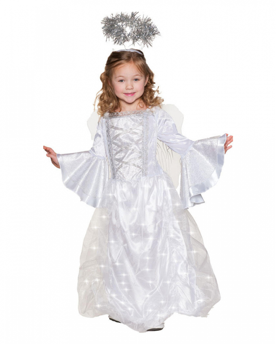 Leuchtendes Engel Kinder Kostüm in weiß für Weihnachten Weißes Engel Kinderkostüm mit Beleuchtung Unser leuchtendes Engel Kinder Kostüm in weiß für Weihnachten ist eine wahrhaft märchenhafte Verkleidung. Der magische Leuchteffekt lenkt alle Blicke auf den kleinen Himmelsboten, der die frohe Kunde verbreitet. Unser leuchtendes Engel Kinder Kostüm ist mit Flügeln und Heiligenschein ausgestattet. Die niedliche Verkleidung wird durch einen imposant anmutenden Leuchteffet ergänzt. Lieferumfang: 1 x Weißer Engel Kinder Kostüm leuchtend Inhalt: 1x Kostümkleid, 1x Flügel, 1x Heiligenschein Farbe: Weiß, Silber Größe: S, M, L Material: 100% Polyester Kinder Kostüm für Weihnachten Verkleidung mit Leucht-Effekt Größe: S (122-128) M (128-140) L (146-152) Gesamtlänge: ca. 100 – 123 cm ca. 120 – 137 cm ca. 137 – 147 cm Taillenumfang: ca. 57 – 59 cm ca. 59 – 62 cm ca. 64 – 67 cm Nicht für Kinder unter 3 Jahren geeignet. Enthält eventuell Kleinteile die verschluckt werden könnten. Es besteht dadurch Erstickungsgefahr.