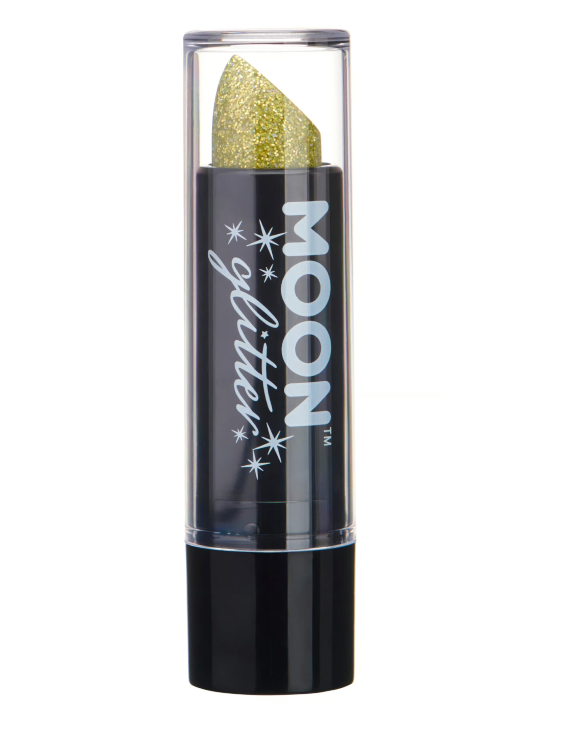 Funkelnd wie ein Stern wird Dein Lächeln mit diesem goldenen Glitter-Lippenstift. Auftragen, lächeln, bezaubern. Oder Deinen Freunden einfach ein glitzerndes Bützchen aufdrücken.