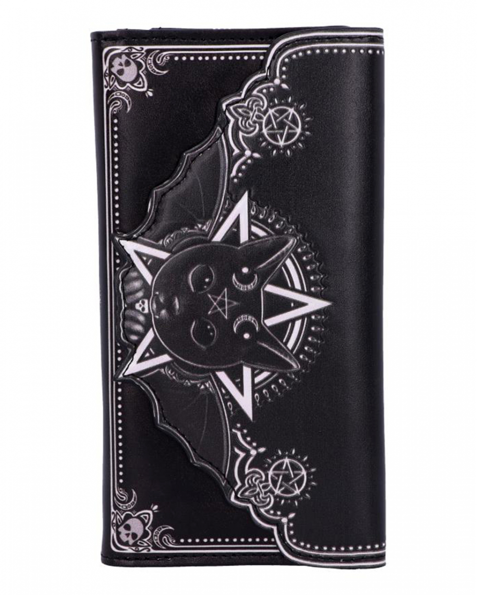 Malpuss Hexenkatze Geldbörse 18,5cm Gothic Geldbeutel im Wicca und Pagan Style für Katzenliebhaber Die Malpuss Hexenkatze Geldbörse ist ein tolles Accessoire für Nachtschwärmer. Ein Vampirgeist, der durch Fledermausflügel, die aus dem Rücken der Katze ragen, symbolisiert wird, zeigt den okkulten Charakter. Das Motiv ist ideal für Gothic Queens. Der mit kunstvollen Silberdetails verzierte Malpuss Hexenkatze Geldbeutel ist aus Kunstleder gefertigt und hat mehrere Fächer für Karten, Bargeld und Münzen. Das Portemonnaie begeistert mit dem Motiv einer Katze mit Vampirzähnen und Fledermausflügeln. Lieferumfang: 1 x Malpuss Hexenkatze Geldbörse 18,5cm Farbe: Schwarz, Weiß, Silber Größe: ca. 18,5 cm Gewicht: 210 g Material: Kunstleder Stylischer Gothic Geldbeutel für Katzenliebhaber Mit Pentagramm 6 Totenschädel als Verzierung Mehrere Fächer für Karten, Bargeld und Münzen Malpuss Katze aus der Kult Cutie Reihe Der Artikel ist ein Accessoire für Erwachsene und kein Spielzeug. Nicht für Kinder unter 3 Jahren geeignet. Kann Kleinteile enthalten, die verschluckt werden können – Erstickungsgefahr. Von Feuer und offenen Flammen fernhalten.
