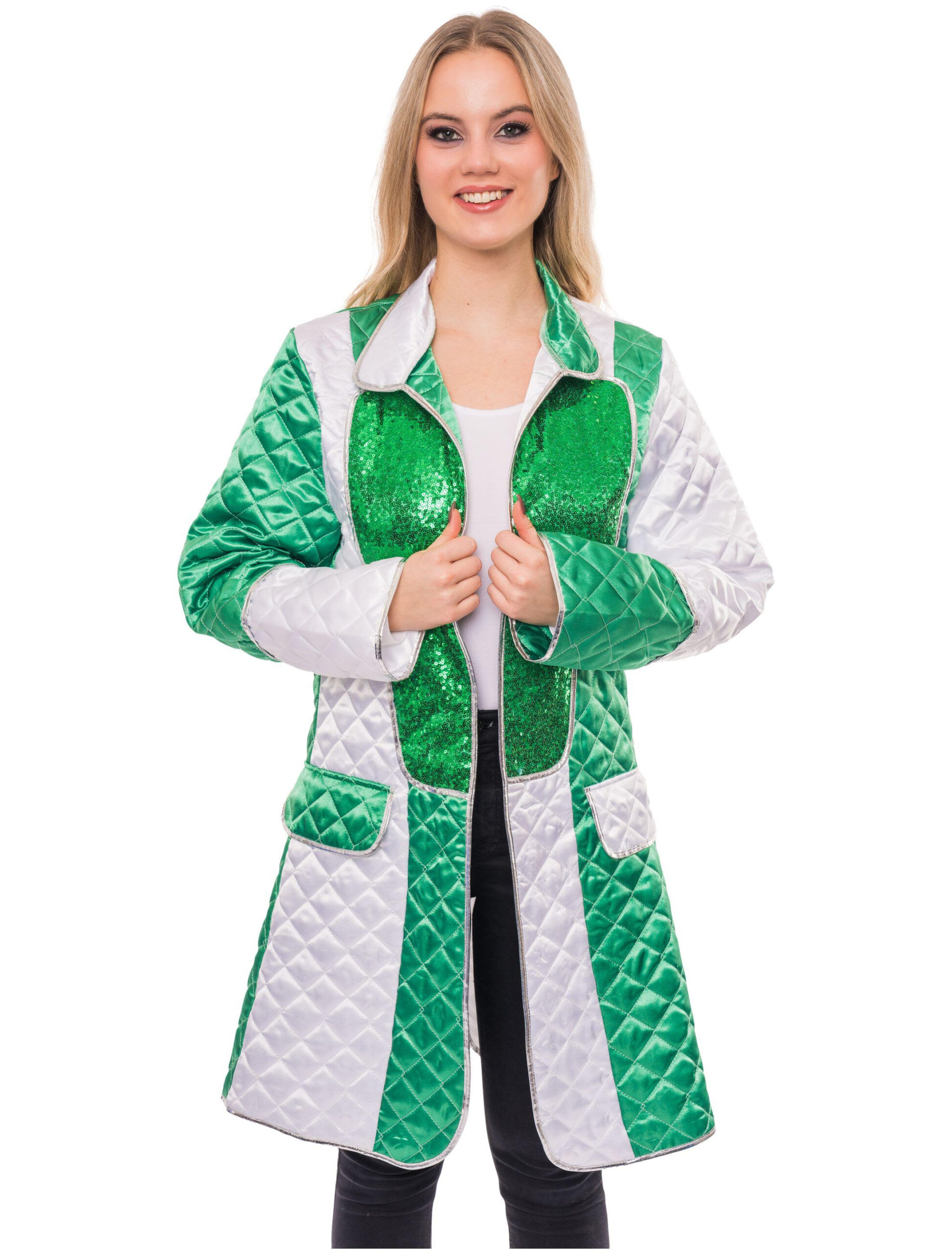 Mantel gesteppt Damen grün/weiß 2XL, ideal für Karneval & Fasching