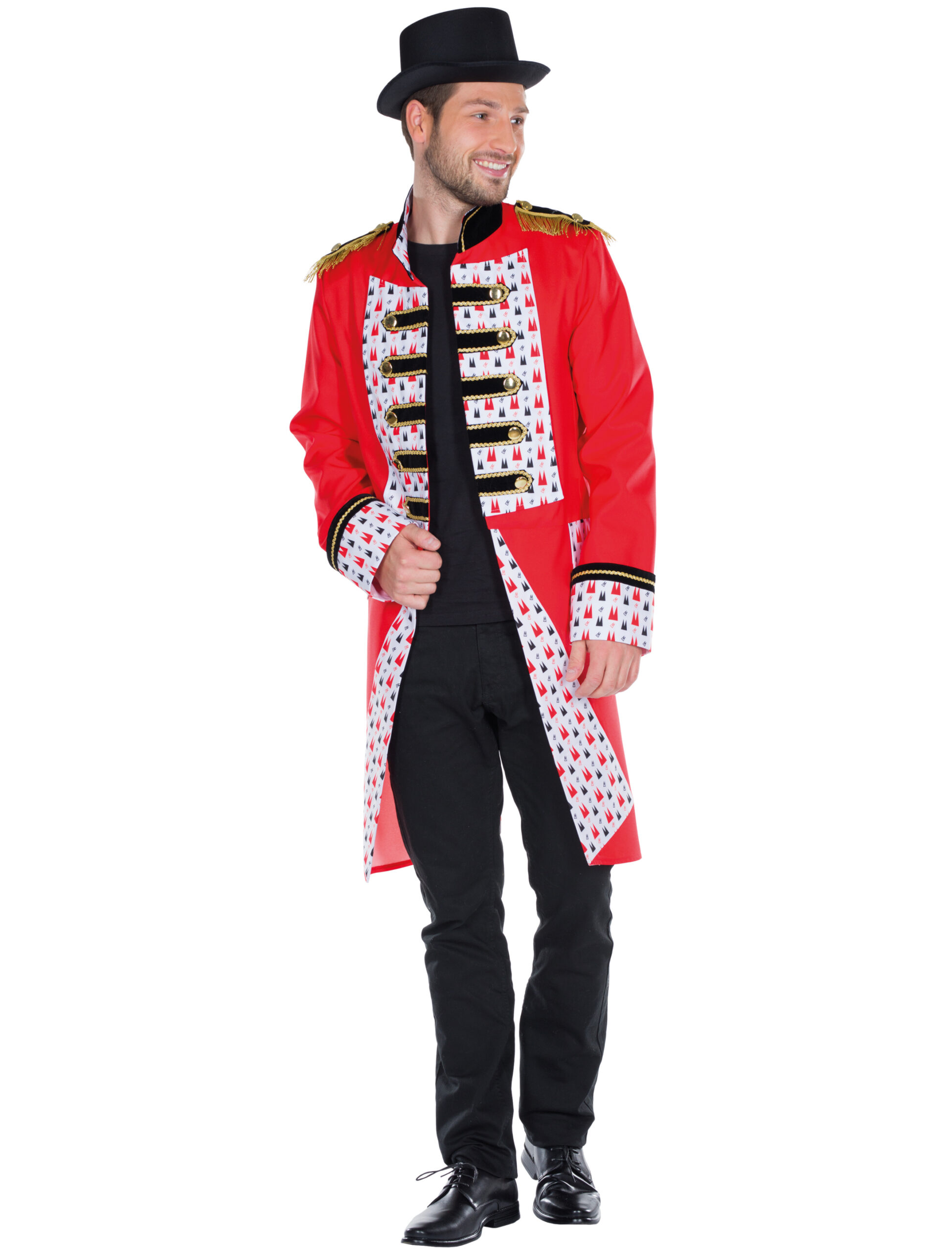 Du bist Köln-Fan durch und durch? Dann wird Dich der Anblick dieses Mantels umhauen. Der hübsche Köln-Mantel besteht aus einem roten Stoff, der in der Front, an den Ärmeln und am Kragen mit roten und schwarzen Dom-Mustern verziert ist. Die Schultern werden von edlen Schulterklappen geziert, ebenso sind die Bereiche rund um den Kragen und den Ärmelsäumen mit hübschen, goldfarbenen Borten verziert. Weitere Hingucker des langen Herren-Mantels sind die goldenen Knöpfe in der Front. Die perfekte Hommage an Deine Lieblingsstadt am Rhein!