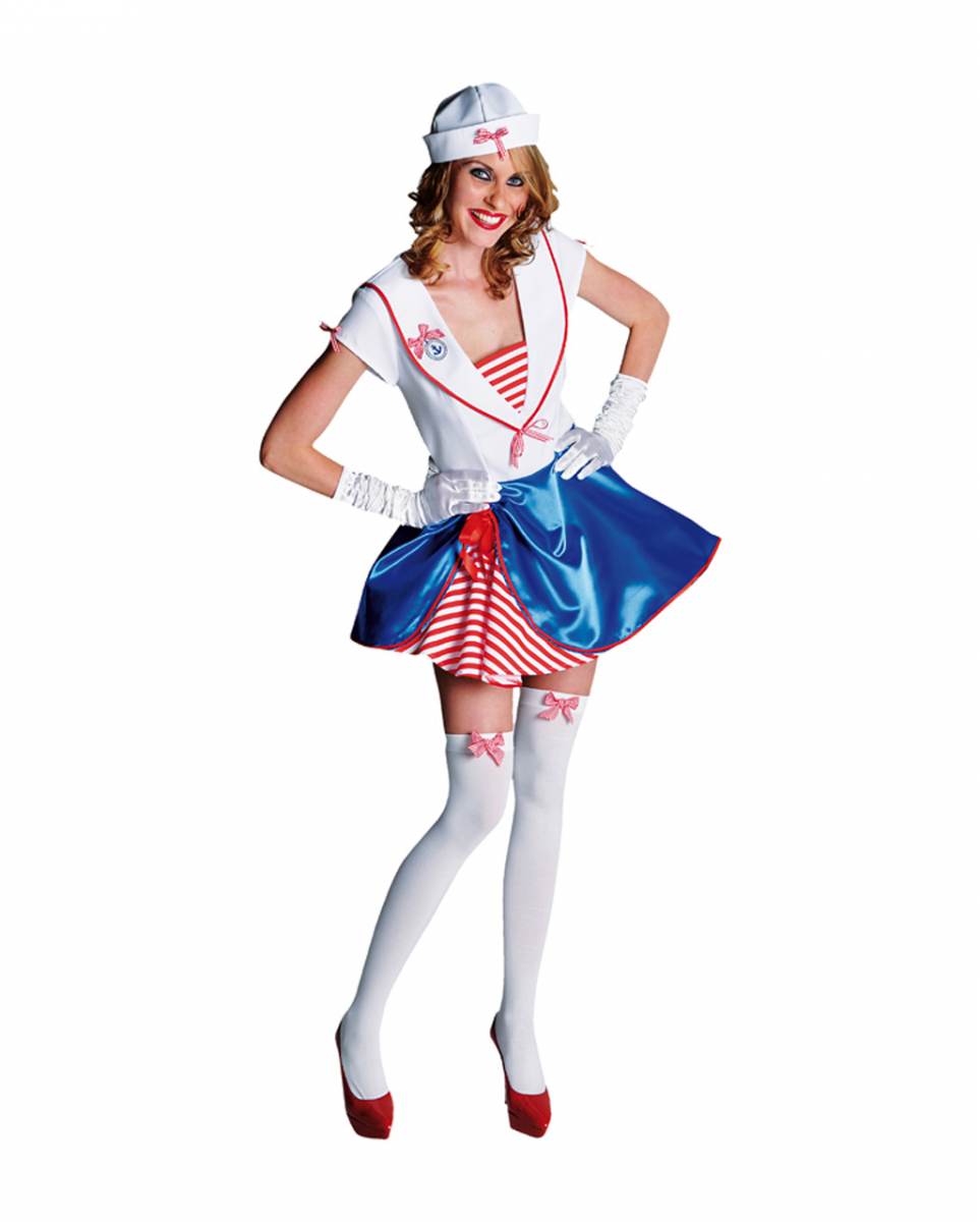 Matrosen Minikleid Mit dem Seemannsbraut Kostüm wird die Männerwelt stramm stehen Das Minikleid des Kurzarm Matrosen Kostüms wurde aus Polyester gefertigt. Das sehr schön geschnittene Matrosen Kleid ist in den Farben blau,weiß und rot gehalten. Das Oberteil ist Weiß und über den Schultern ein ein Kragen der ins Dekolttee fällt. Der Rock ist aus blauem Samt. An der rechten Seite wurde ein weiß- rot gestreifter Stoff eingenäht. Zwei weiße Satin Bänder verziehen die Taille. Die Bänder werden am Rücken oder am Bauch geschlossen . Um das Bekleiden zu erleichtern wurde ein Reißverschluss am Rücken eingenäht. Im Lieferumfang enthalten, ist auch eine weiße Matrosen Kappe, die hat an der forder Seite eine kleine Schleife.Produktinformation: Matrosen Minikleid mit Hütchen Material: 100% Polyester Farbe: blau-weiß-rot Größe XS: Gesamtlänge: ca 78cm, Schulterbreite: ca 35cm, Brustumfang: ca 39cm, Taille: ca 35cm, Hütchen Umfang: ca 54cm Größe S:Gesamtlänge: ca 79cm, Schulterbreite: ca 35cm, Brustumfang: ca 42 cm, Taille: ca 37cm, Hütchen Umfang: ca 54cm Größe M: Gesamtlänge: ca 80cm, Schulterbreite: ca 40cm, Brustumfang: ca 46cm, Taille: ca 40cm, Hütchen Umfang: ca 54cm Größe L: Gesamtlänge: ca 87cm, Schulterbreite: ca 40cm, Brustumfang: ca 48cm, Taille: ca 45cm, Hütchen Umfang: ca 54cm