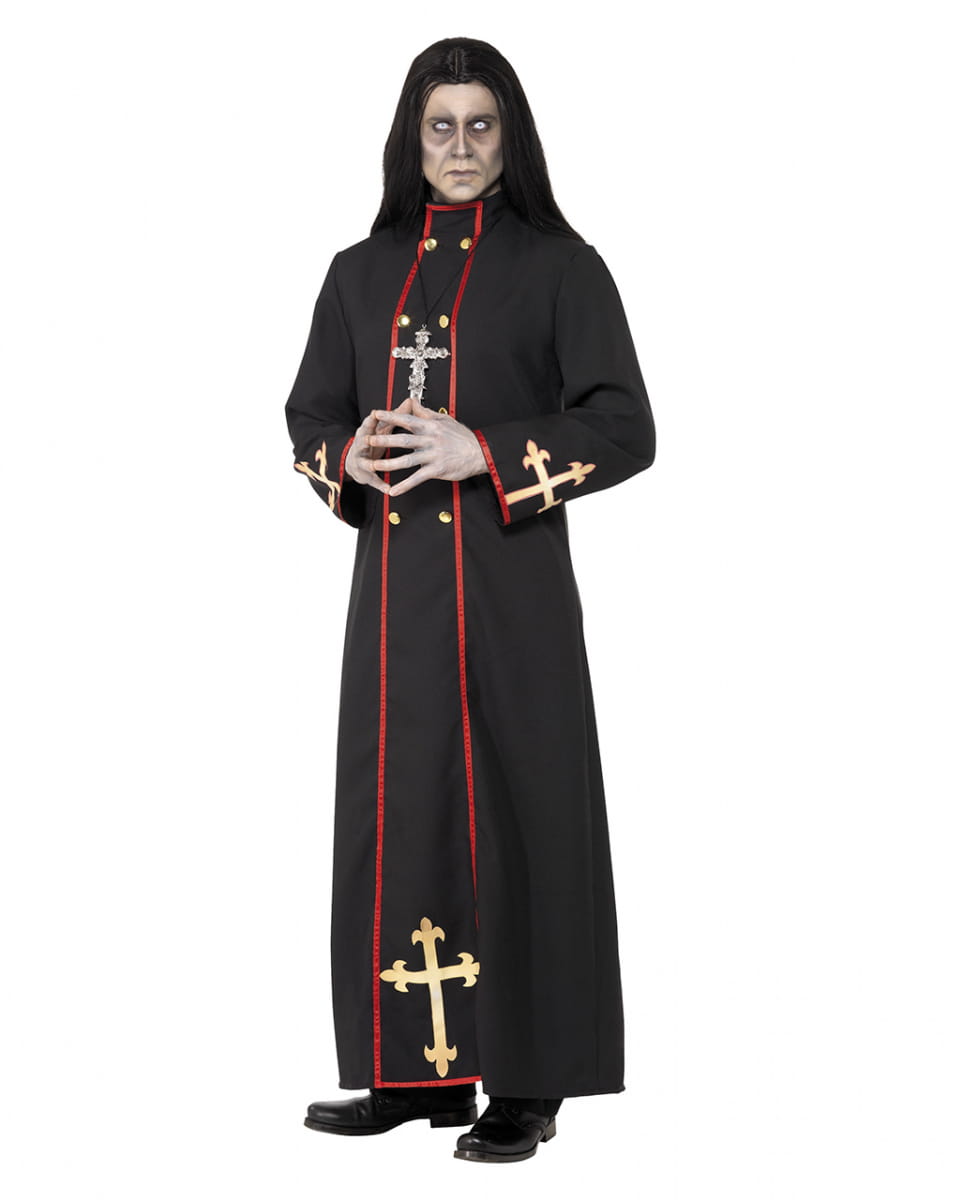 Todespriester Kostüm als Halloween Verkleidung Größe M Hol dir das Kirchenmann Kostüm für deinen Halloween-Auftritt Die Kirche hat vom Mittelalter bis zur Gegenwart nicht immer nur mit Ruhm bekleckert. Mit dem Todespriester Kostüm kannst auch du in die Rolle eines unbarmherzigen Geistlichen schlüpfen. Das braune Todespriester Kostüm ist mit goldenen Knöpfen, roten Nähten und mehreren aufgedruckten Kreuzen versehen. Mit diesem Look kannst du au der nächsten Halloween-Party als düsterer Kirchenmann in Erscheinung treten. Lieferumfang: 1x Todespriester Kostüm als Halloween Verkleidung Farbe: braun/rot/goldfarben Material: 100% Polyester GRÖSSE M Schulterbreite ca. 47 cm Taillenbreite ca. 50 cm Armlänge ca. 63 cm Gesamtlänge ca. 151 cm