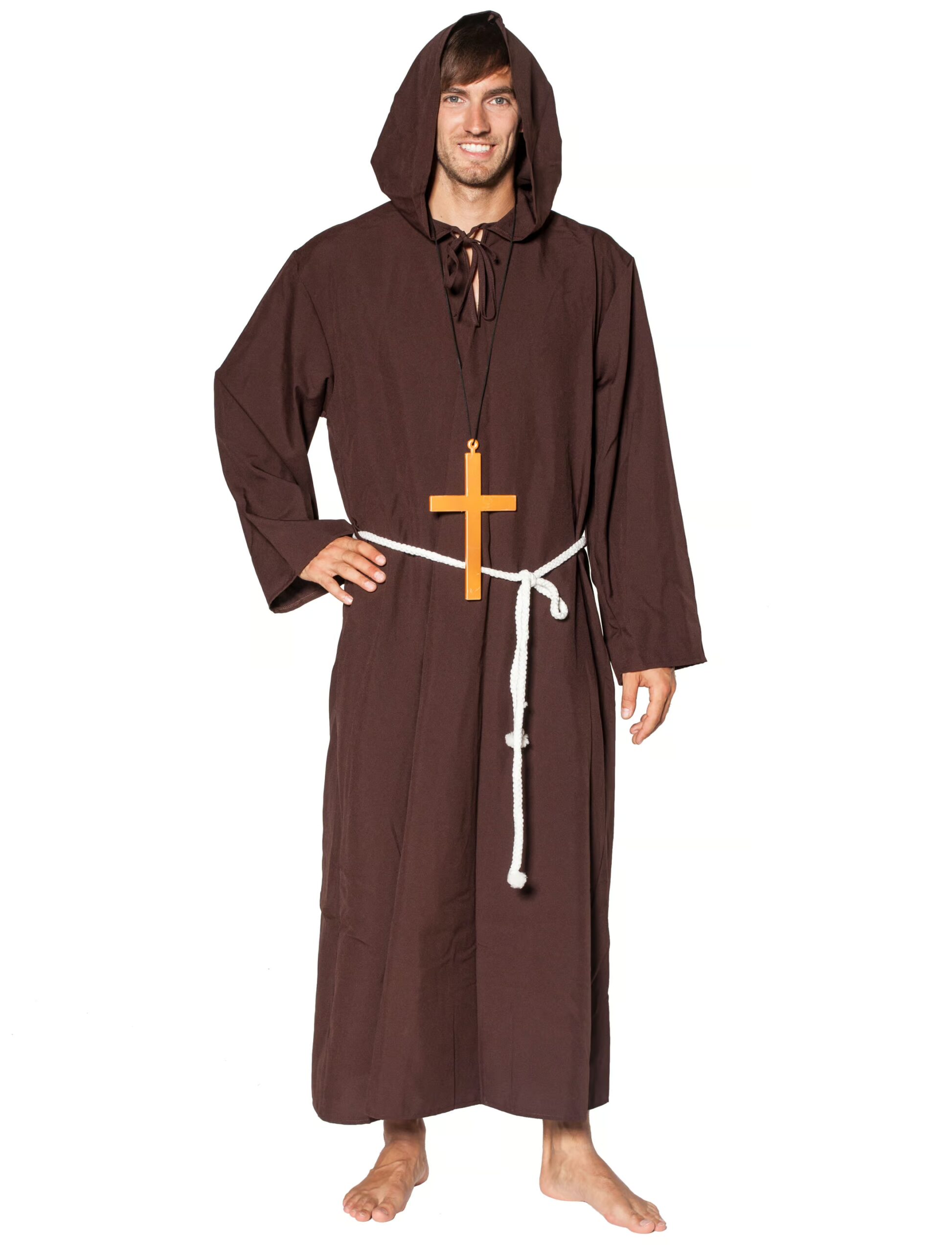Unser Mönchkostüm ist zweiteilig, bestehend aus einer langen Kutte und einer Gürtelkordel. Das Gewand ist aus einem einfachen braunen Stoff gefertigt und verfügt zusätzlich über eine Kapuze, die einfach über den Kopf gezogen werden kann. Jetzt braucht Dein Mönch Kostüm nur noch ein paar kleine Accessoires, wie einen Rosenkranz oder Halskette mit einem Kreuz. Das perfekte Kostüm um an Karneval, Halloween und Fasching aufzufallen.
