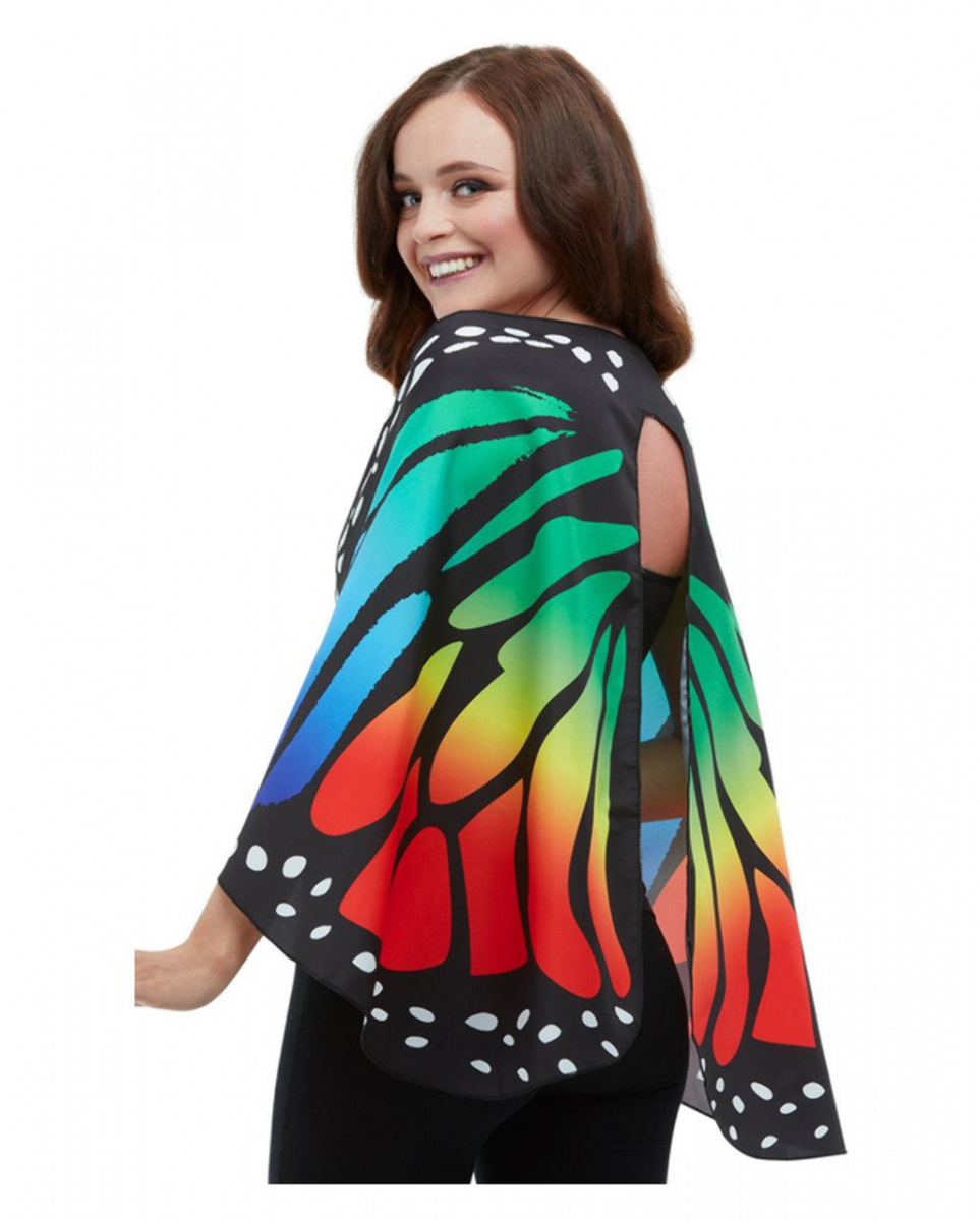 Monarch Schmetterlings Flügel als Kostüm Accessoire für Halloween Buntes Butterfly Kostümzubehör für deine Schmetterling Verkleidung Du wirst zum hübschen Edelfalter – und zwar mit Monarch Schmetterlings Flügel als Kostüm Accessoire für Halloween! Die Regenbogen Schmetterlingflügel für Kostüme sind eine Art Cape mit mit bunten Farben und von schwarzen Adern durchzogen. Ein echtes Muss für farbenfrohe Insekten-Kostüme! Dein Paket enthält bunte Kostümflügel für Schmetterling Verkleidungen. Es handelt sich um ein leichtes Stoff-Cape, welches du einfach um deine Schultern legst. Die kräftigen bunten Farben werden alle Blicke auf dich lenken – nun fehlen nur noch Insekten-Fühler, welche du passend dazu bestellen kannst. Lieferumfang: 1 x Monarch Schmetterlings Flügel als Kostüm Accessoire für Halloween Farbe: Blau / Grün / Rot / Gelb / Schwarz Größe: Einheitsgröße für Erwachsene Material: 100% Polyester Bunte Stoff Flügel als Kostüm Accessoire für Halloween Nicht für Kinder unter 3 Jahren geeignet. Kann Kleinteile enthalten, die verschluckt werden können – Erstickungsgefahr.