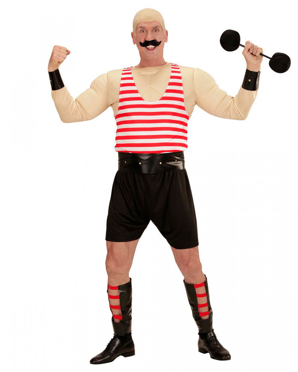 Bodybuilder Herrenkostüm M/L = 50-52 , XL = 54 Witziges Männer-Kostüm mit Muskeln und Zubehör Als Bodybuilder Herrenkostüm im Stil der 20er Jahre, machst du mit diesem Muskelmann-Kostüm garantiert von dir reden. Lege dich mit den stärksten Männern an und beweise beim Kräftemessen deine unsagbare Stärke. Mit deinen aufgepumpten Super-Muckis kann die Kostümparty steigen!. Hol dir dieses geniale Männerkostüm mit Muskeln und zeig Popeye wo der Hammer hängt! Das Bodybuilder Herrenkostüm ist in den Größen M/L (50-52) und XL (54) erhältlich. Das Muskel-Kostüm-Set besteht aus einem weiß-rot gestreiften Unterhemd, einem Muskelshirt, einem Gürtel, Arm- und Beinschoner sowie Shorts und einer Fake-Hantel. Das Material ist angenehm weich und liegt sehr gut auf der Haut. Mit dem Gewichtheber Kostüm für Männer kannst du dir zu Fasching, Halloween oder Mottoparty den starken Mann mimen. Lieferumfang: 1 x Bodybuilder Herrenkostüm Inhalt: Muskelshirt, Unterhemd, Short, Gürtel, Armschoner, Beinschoner, Hantel Farbe: Schwarz/Rot/Hautfarben/Weiß Größe: M/L = 50-52 , XL = 54 Material: 100% Polyester Lustiges Jahrmarkt und Zirkus Mottokostüm Muskeloberkörper Schaumstoff Hantel Schnauzbart und Glatzenfolie separat erhältlich Der Artikel ist ein Kostüm für Erwachsene und kein Spielzeug. Nicht für Kinder unter 3 Jahren geeignet. Kann Kleinteile enthalten, die verschluckt werden können – Erstickungsgefahr. Von Feuer und offenen Flammen fernhalten.