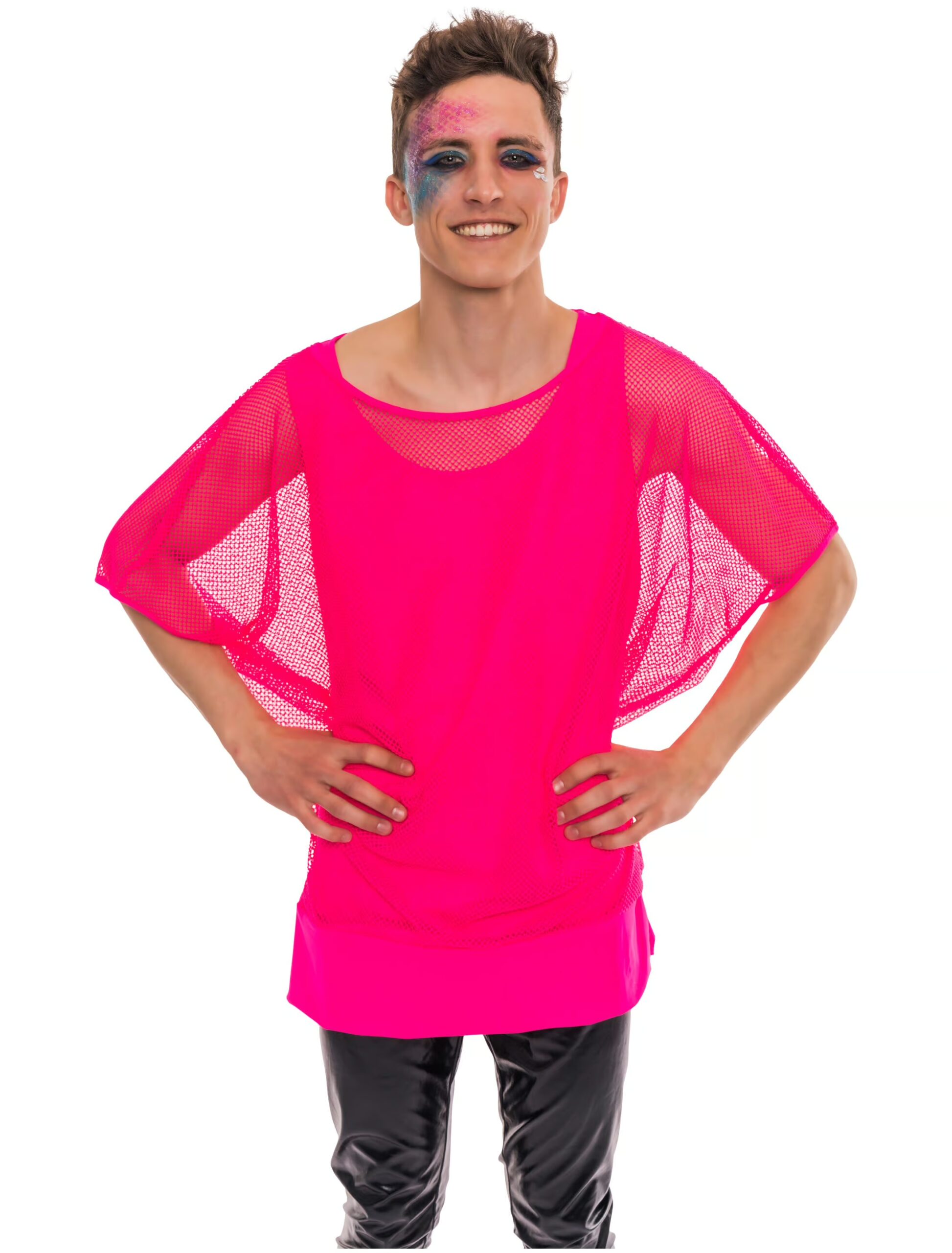 Netz-T-Shirt neonpink S/M, ideal für Karneval & Fasching