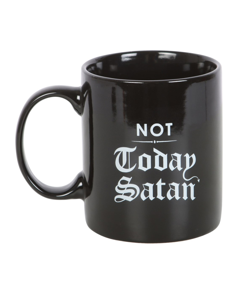 Schwarzer „Not Today Satan“ Kaffeebecher als Lieblingstasse 300 ml Okkulte Magie für deinen morgendlichen Kaffee, Tee und Zaubertrank In der Morgendämmerung, wenn die Schatten noch flüstern, greife ich zu meinem „Not Today Satan“ Kaffeebecher. Dieses tiefschwarze Gefäß ist nicht nur ein Ort für meinen Zaubertrank, sondern auch mein Schild gegen die düsteren Kräfte des Alltags. Mit jedem Schluck aus der mystisch verzierten Tasse in gotischer Schrift verkünde ich triumphierend: Heute lasse ich mich von nichts und niemandem unterkriegen! Der schwarze „Not Today Satan“ Kaffeebecher als Lieblingstasse 300 ml besteht aus Keramik und überzeugt mit einem auffälligen Statement. Unser Becher ist mikrowellen- sowie spülmaschinengeeignet und damit ebenso praktisch wie stilvoll. Mit einem Fassungsvermögen von 300 ml bietet er ausreichend Platz für deinen morgendlichen Zaubertrank. Lieferumfang: 1 x Schwarzer „Not Today Satan“ Kaffeebecher als Lieblingstasse 300 ml Farbe: Schwarz, Weiß Größe: 12 x 9,5 x 8,2 cm Fassungsvermögen: 300 ml Gewicht: 340 g Material: Keramik Halte mit dieser schwarzen Keramiktasse als Kaffeebecher deine Dämonen in Schach Mit dem Schriftzug „Not Today Satan“ in gotischer Schrift hältst du unliebsame Gäste mit Hufen fern! Als Lieblingstasse darf der schwarze Kaffeebecher in keinem alternativen Zuhause fehlen Fantastisches Geschenk für Liebhaber von okkulten Kuriositäten und Sammelgegenständen Mikrowellen- und spülmaschinenfest Fassungsvermögen 300ml