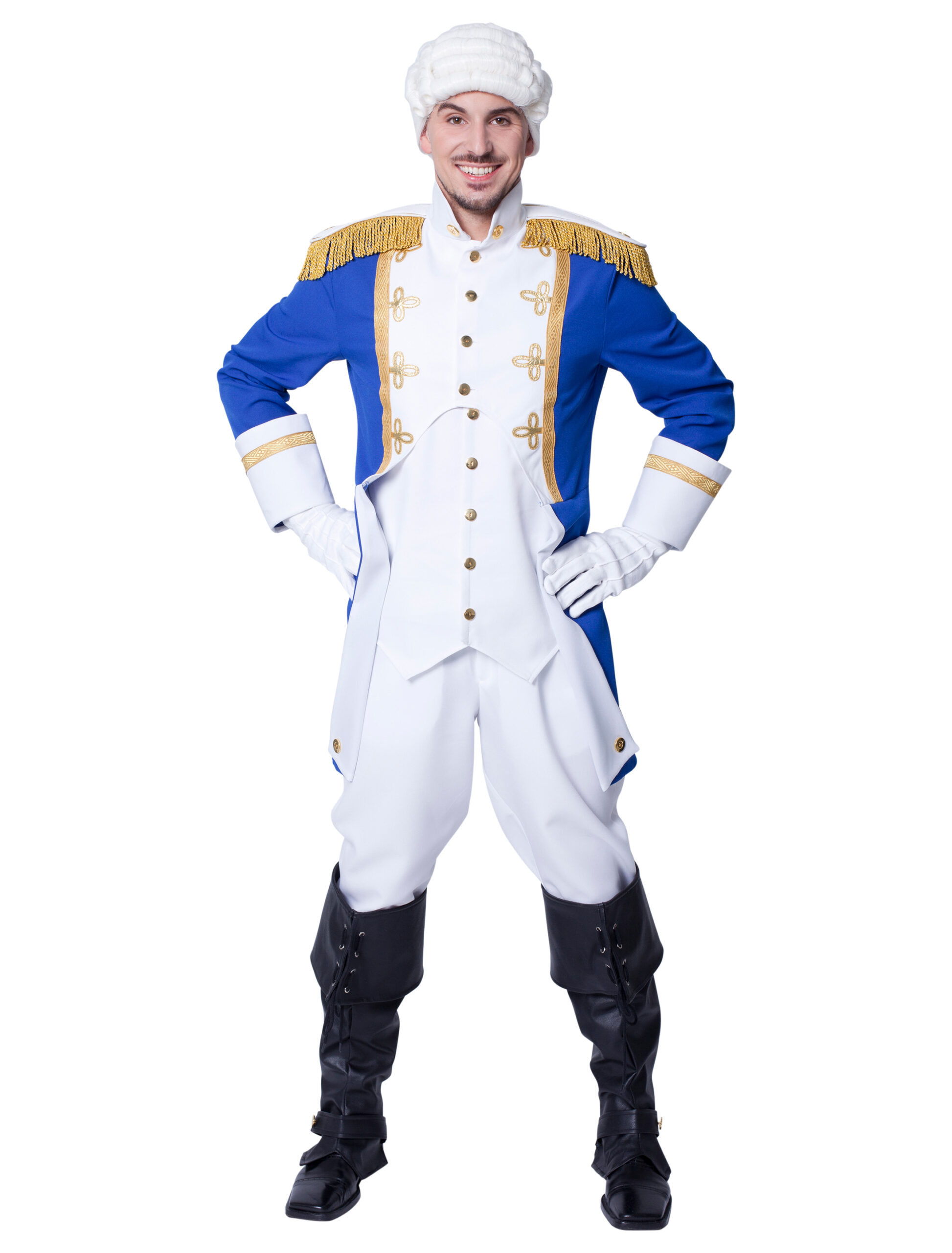 Ein stattlicher Offizier wie einst Napoleon mit unserem dreiteiligen Offizierkostüm in Weiß und Blau! Der authentische Mantel verleiht Dir die ehrfürchtige Ausstrahlung, die Du dafür brauchst! Hier finden sich alle klassischen Elemente einer Offizierjacke wieder. Goldene Knöpfe an der Uniformweste und -Mantel bringen mit goldenem Zierband einen besonders edlen Look. Welchem Gentleman könnte ein solch herrschaftliches Kostüm bitte nicht stehen?