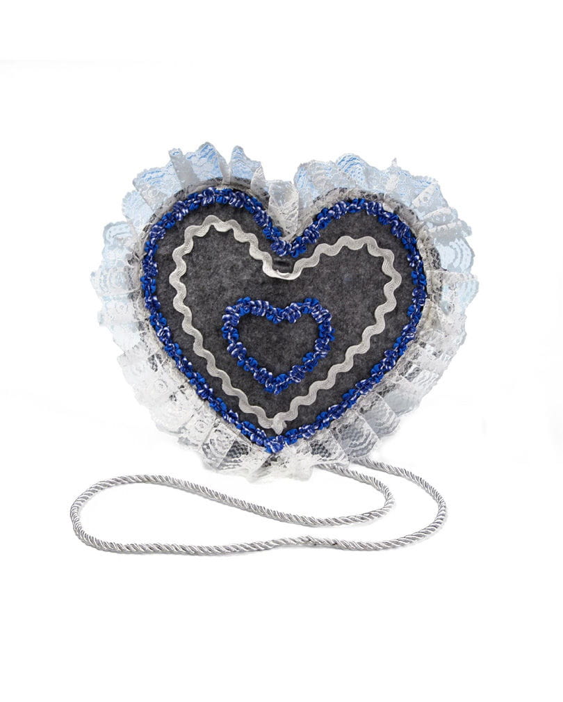 Trachtentasche in Herzform Oktoberfest Tasche in den bayrischen Farben Mit der Trachtentasche in Herzform haben wir das perfekte Zubehör für die nächsten Wiesen im Sortiment. Die Trachtentasche hat die Form eine großen Herzen mit weißen Spitzen und mehreren kleineren blau/weißen Herzchen, die auf dem grauen Untergrund aufgenäht sind. Mit Hilfe der langen Kordel lässt sich die Tasche lässig umhängen, um dann im Inneren wertvolle Gegenstände wie Geldbeutel und Handy zu verstauen. Lieferumfang: 1 x Trachtentasche in Herzform Farbe: grau/blau/weiß Größe: ca. 21 cm hoch / ca. 24 cm breit Material: 100% Polyester Traditionelles Oktoberfest Zubehör Achtung: Der Artikel ist für Erwachsene und ist kein Spielzeug. Nicht für Kinder unter 3 Jahren geeignet. Kann Kleinteile enthalten die verschluckt werden können – Erstickungsgefahr. Von Feuer und offenen Flammen fernhalten.