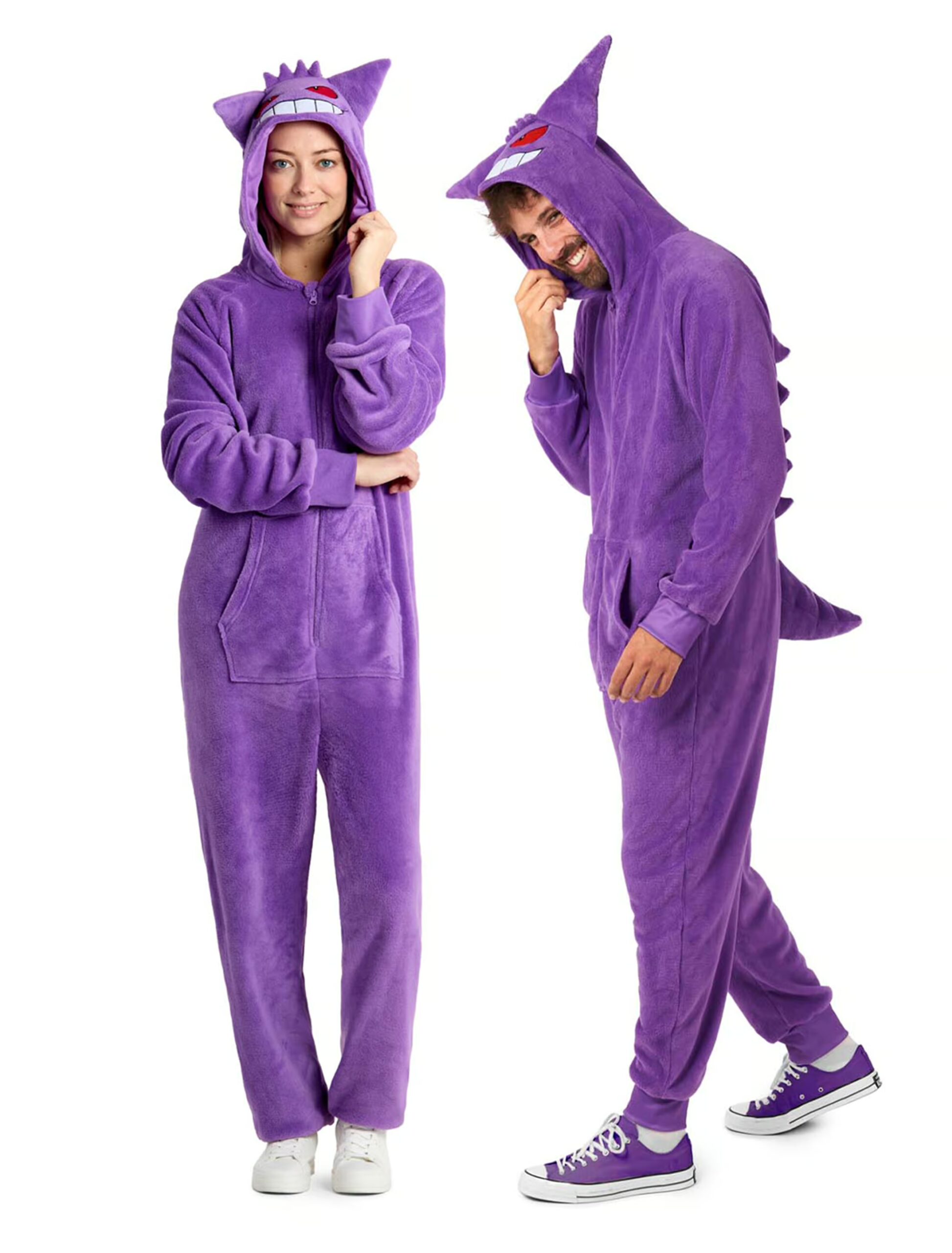Flauschig, bequem und absolut episch – mit unserem Onesie wirst du nicht nur zum Meister der Entspannung, sondern auch zum Highlight auf jeder Pyjama-Party. Der Onesie bringt alles mit, was ein echter Gengar-Fan braucht: Gengars unverwechselbares Lächeln auf der Kapuze, seine lila Farbe, und natürlich die fiese Coolness, die ihn so berüchtigt macht. Ob beim Netflix-Binge, einer Runde Pokémon-Spielen oder als bequemes Kostüm für die nächste Party – dieser Onesie ist dein treuer Begleiter. Zeig allen, dass du zwar ein Geist sein kannst, aber definitiv keiner, der auf Style und Komfort verzichtet!