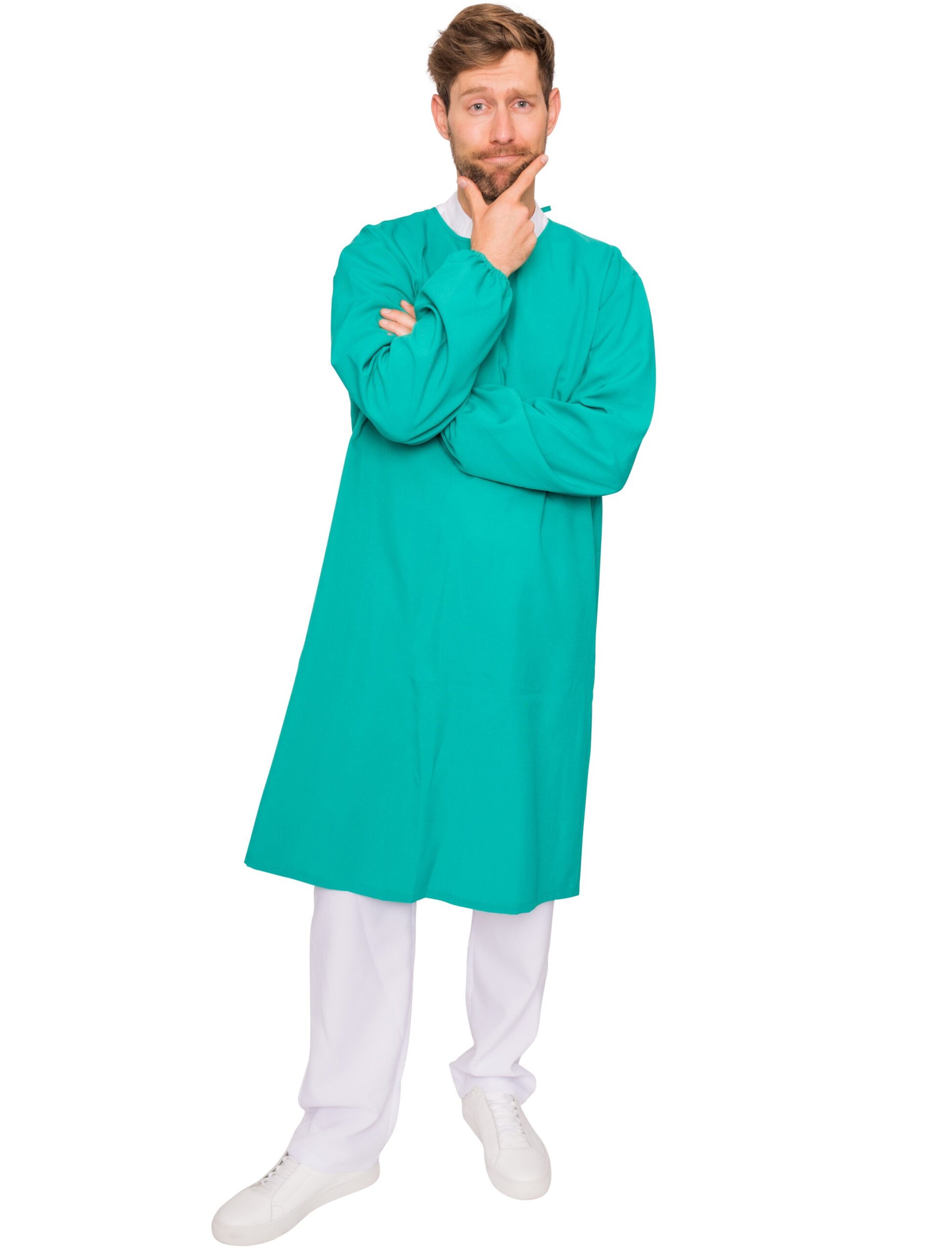 Du wolltest Arzt werden, mit dem Medizinstudium hat es jedoch nicht geklappt? Macht nichts, mit diesem türkisfarbenen OP-Kittel kannst Du Dir diesen Traum für einige Stunden auf der nächsten Kostümparty erfüllen. Der am Rücken mit Bändern zu schließende OP-Kittel ist für Damen und Herren geeignet. Dazu passen eine weiße Hose und Accessoires aus unserem Shop wie Stethoskop und schwarz umrandete Nerdbrille, die Dir eine unvergleichlich intelligente Aura verleihen.