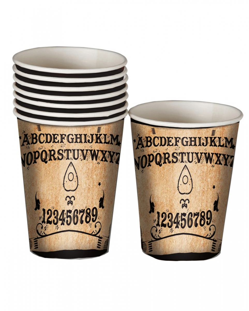 Halloween Pappbecher mit Ouija Brett Motiv 8 St. als Tischdeko Stimmungsvolle Halloween Einwegbecher mit Hexenbrett Motiv Die Halloween Pappbecher mit Ouija Brett Motiv erinnern daran, dass es Dinge gibt, die man nicht erklären kann. Kommuniziert ihr über ein Hexenbrett, bekommt ihr mitunter verstörende Antworten. Die Ouija Board Becher sagen nur das eine: Feiert schön! Unsere praktischen Halloween Pappbecher mit Ouija Brett Motiv zeigen die typischen Zeichen, also das Alphabet und die Zahlen an, die man auf dem klassischen Hexenbrett findet. Dazu sieht man eine Planchette und verschiedene mystische Symbole. Lieferumfang: 1 x Halloween Pappbecher mit Ouija Brett Motiv 8 St. Inhalt: 8 Stück Farbe: Beige, Braun, Schwarz Größe: ca. 10 cm hoch Material: Laminierter Pappkarton Stimmungsvolle Halloween Pappbecher mit Hexenbrett Motiv Mystische Ouija Brett Planchette, Zahlen und ABC als Aufdruck Perfekt für dein Wahrsage, Wicca und Pagan Party-Thema Von Feuer und offenen Flammen fernhalten.