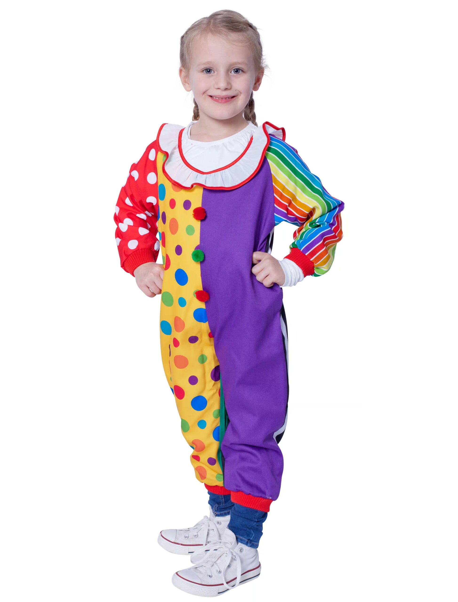 Manege frei, jetzt kann der Spaß beginnen! Dieser zirkusreife Clown Overall ist genau das richtige Outfit für die kleinen Jecken unter Euch! Das witzige Ganzkörperkostüm für Kinder ist in kunterbunten Farben und verschiedenen Mustern gestaltet. Egal von welcher Seite es angeschaut wird, immer wieder entdeckt man neue Details: von Punkten, über Karo-Muster bis hin zu Streifen in verschiedenen Größen und Farben – von allem ist etwas dabei. Der weiße Kragen darf natürlich auch nicht fehlen und im Bauch-Bereich sind flauschige Zierknöpfe angebracht. Verschlossen wird das Kostüm mit einem unauffälligen Reißverschluss am Rücken. Jetzt aber: Alaaf!
