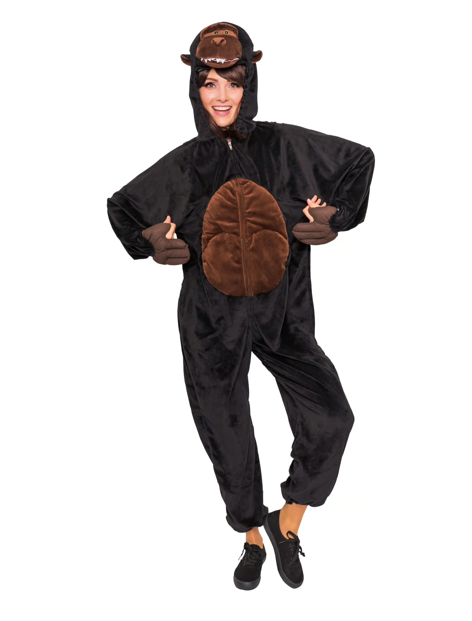 Als bezaubernde, exotische Gorilla Dame machst Du in diesem angesagten, dunkelbraunen Gorilla-Overall aus Plüsch beim Straßenkarneval und auf tierischen Motto-Partys immer eine gute Figur. Das attraktive Kostüm mit Kapuze samt freundlichem Affengesicht sowie den Gorillahänden und verstärktem Bauchteil ist ein hübscher Blickfang und wird mittels Reißverschluss geschlossen. In diesem Kostüm beeindruckst Du nicht nur die Gorillamännchen, sondern auch Jäger, Sammler und anderes närrisches Getier, die so ein bezauberndes Gorillamädchen gern an ihrer Seite hätten. Zudem ist der originelle Overall nicht nur schön weich und kuschelig, sondern hält auch wunderbar warm und ist damit die ideale Kostümierung für den Rosenmontagsumzug.