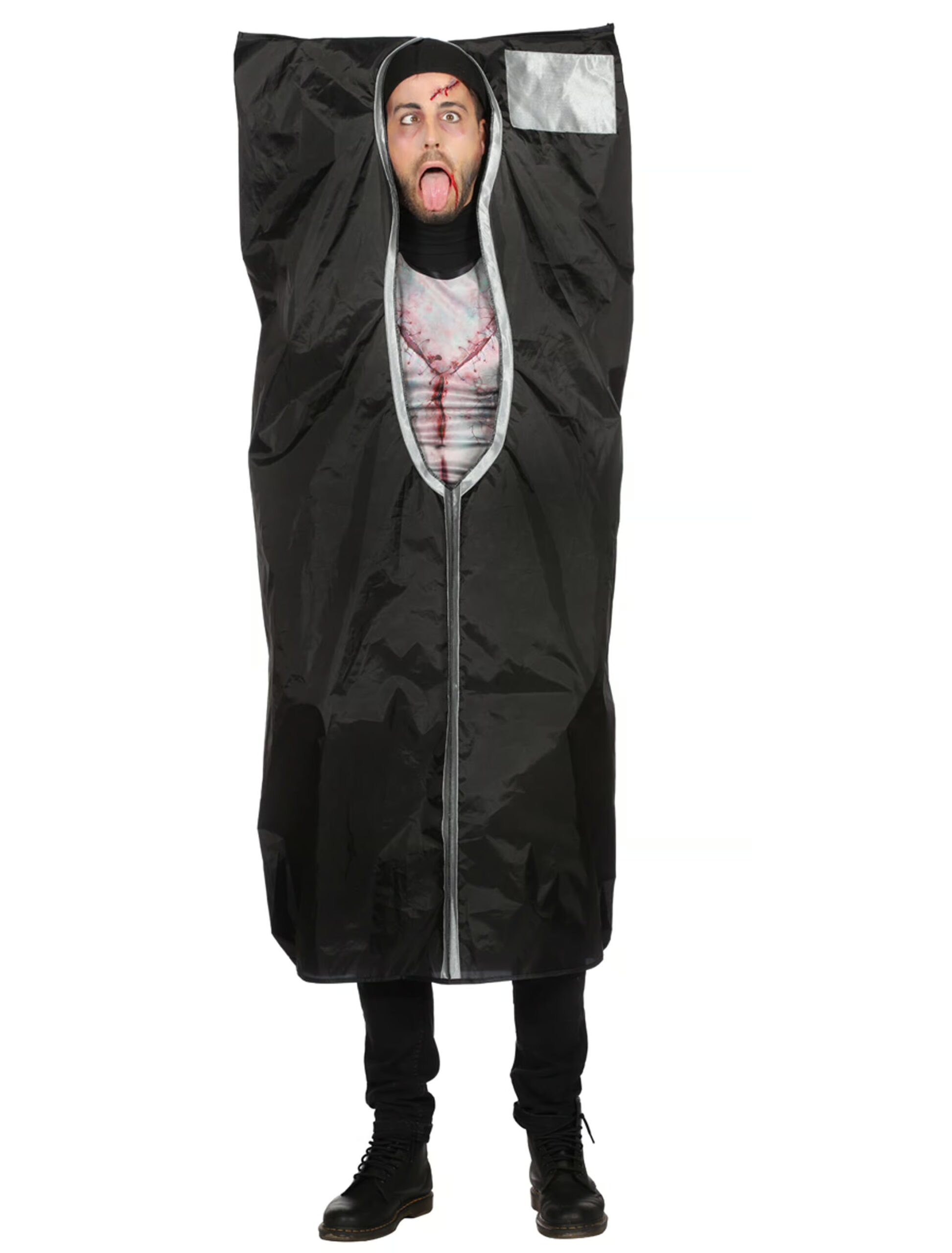 Auferstanden von den Toten machst Du Dich mit diesem Outfit auf in Richtung Halloween Party. Als lebender Leichensack hast Du das Liegen in den kalten Räumen im Institut für Rechtsmedizin satt und willst lieber mit anderen Toten eine coole Party schmeißen. Der Sack zur Aufbewahrung Verstorbener besteht aus Polyester. Mit der passenden blutigen Schminke ist das Outfit aber auch für Karneval und Monster Mottopartys hervorragend geeignet. Unter dem Leichensack kannst Du beim Feiern das ein oder andere alkoholische Getränk verstecken. Zeige den anderen Gästen wie lebendig ein Toter feiern kann!