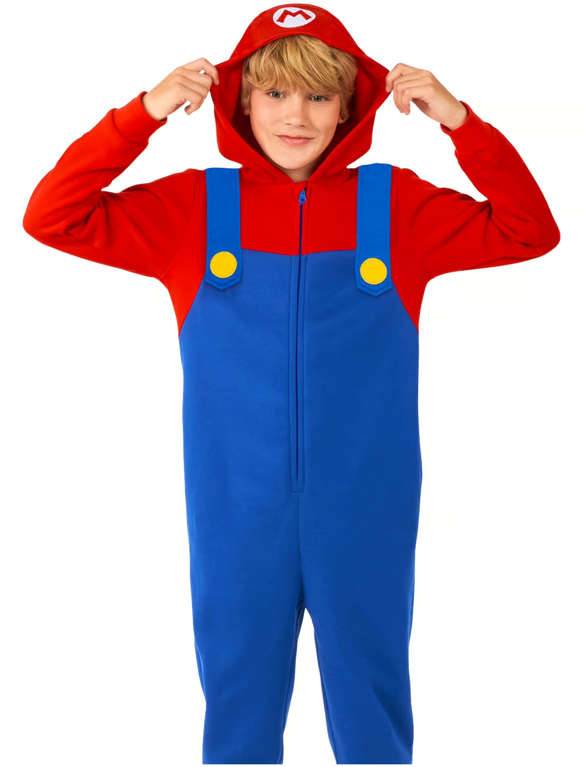 Overall Mario Kinder blau/rot 14-16 Jahre, ideal für Karneval & Fasching