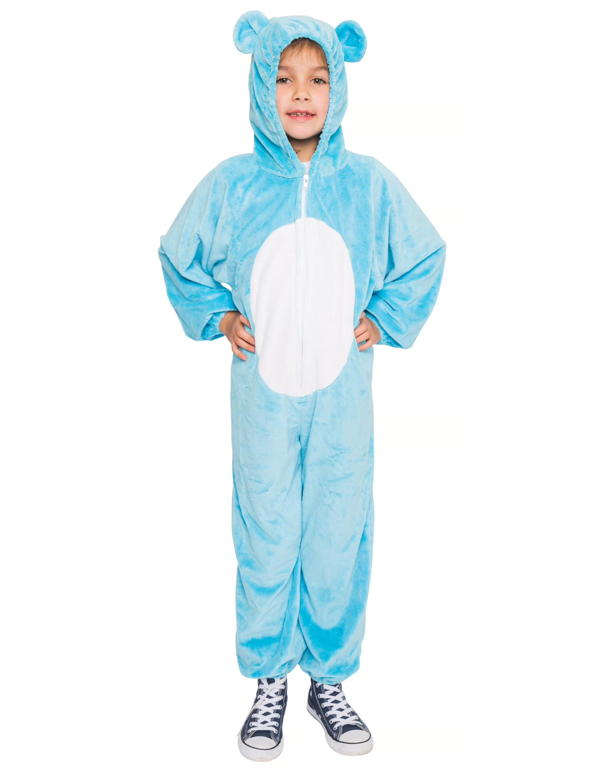 Du bist auf der Suche nach einem süßen Bären Kostüm für die kalten Tage? Dann darf dieser Plüsch Bärchen Overall in Blau für Kinder in Größe 98 bis 128 nicht fehlen. Der Overall besitzt einen Bärchen-Kopf als Kapuze, der mit einem Gummizug versehen ist. Mit der Hilfe eines Reißverschlusses in der Front wird der Overall verschlossen. Die Fuß- und Ärmelenden sind ebenfalls mit Gummizügen versehen und sind für die Hände und Füße mit Gummibänden ausgestattet, um sie einfach umzubinden. Ein Puschelschwanz ist ebenfalls an dem Overall vernäht. Der Overal ist aus 100% Polyester gefertigt. Ein schönes und warmes Kostüm für Karneval und Fasching.