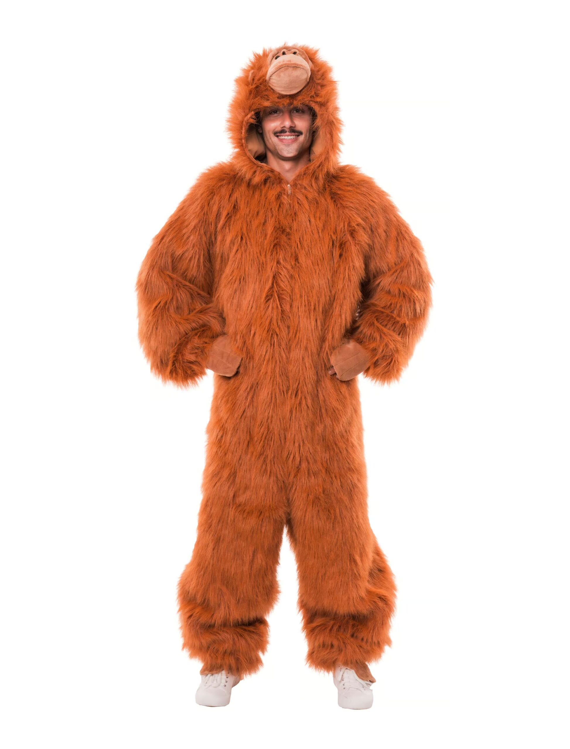 Ab in den Dschungel – mit unserem Plüsch Overall de luxe Orang-Utan für Damen! Die Kapuze bildet den typischen Orang-Utan Kopf nach und sorgt für einen tierisch authentischen Look. Kuscheliger Plüsch sorgt für maximalen Tragekomfort, während praktische Handschlaufen und der Reißverschluss vorne das Kostüm besonders bequem machen. Ideal für Karneval, Tier-Mottopartys oder alle, die mal so richtig affenstark feiern wollen!