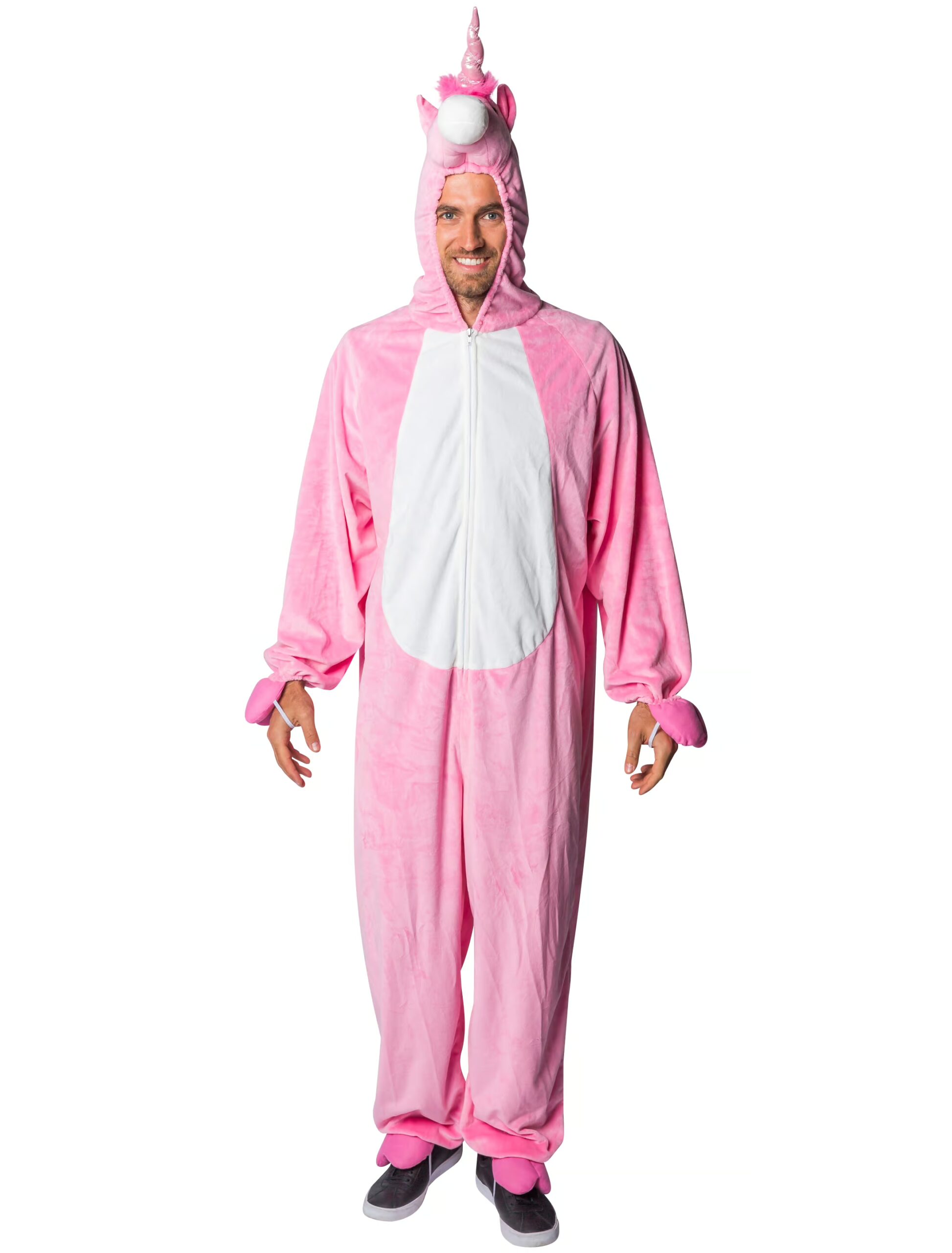 Der süße plüschige Herren Overall ist für den Straßenkarneval oder Deine Junggesellenabschiedsparty (JGA) garantiert das perfekte Kostüm! Der kuschelig warme Overall ist aus einem rosa Plüsch-Stoff gefertigt und wird im weißen Brust- und Bauchbereich mithilfe eines praktischen Reißverschlusses verschlossen. Das Kostüm verfügt über Fuß- und Handstulpen, die mit Hilfe von Gummizügen einen idealen Tragekomfort garantieren. Der Overall besitzt eine Kapuze mit Gummizug in Form eines Einhornkopfes, der mit einem rosaglänzenden Horn und rosa Plüsch-Mähne ausgestattet ist. Im Gesäßbereich befindet sich ein süßer pinker Schweif. Überzeuge als rosa Fabelwesen auf Deiner Party – der Kuschelfaktor ist Dir gesichert!