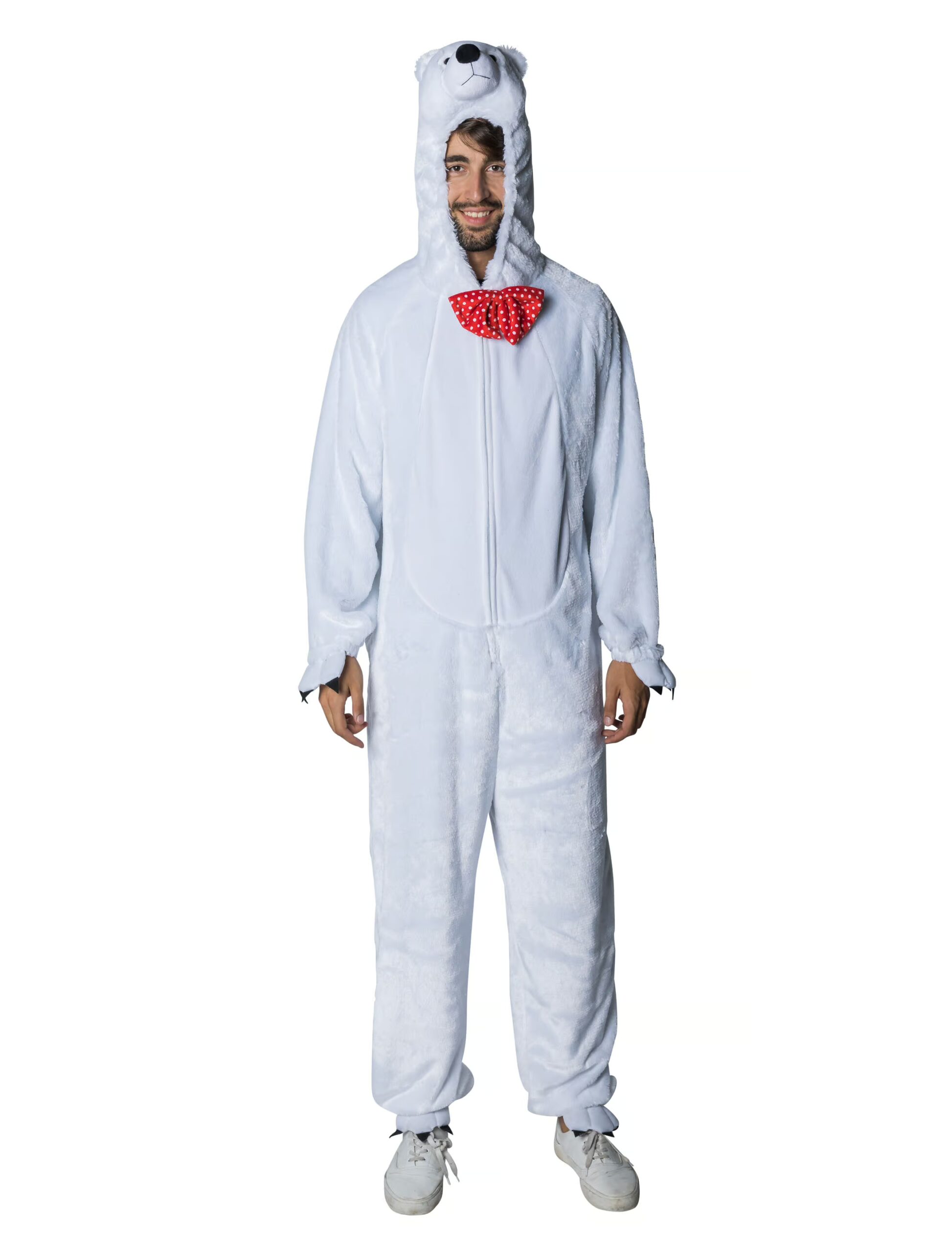 Du suchst nach einem warmen Kostüm für die kalten tollen Karnevalstage? Dann bist Du bei diesem Eisbären Kostüm aus Plüsch für Herren richtig. Der Overall besitzt einen Eisbären-Kopf als Kapuze, der mit einem Gummizug versehen ist. Mit der Hilfe eines Reißverschlusses in der Front wird der Overall verschlossen. Die Fuß- und Ärmelenden sind ebenfalls mit Gummizügen versehen und sind für die Hände und Füße mit Gummibänden ausgestattet, um die Tatzen einfach umzubinden. Ein Puschelschwanz ist ebenfalls an dem Overall vernäht.