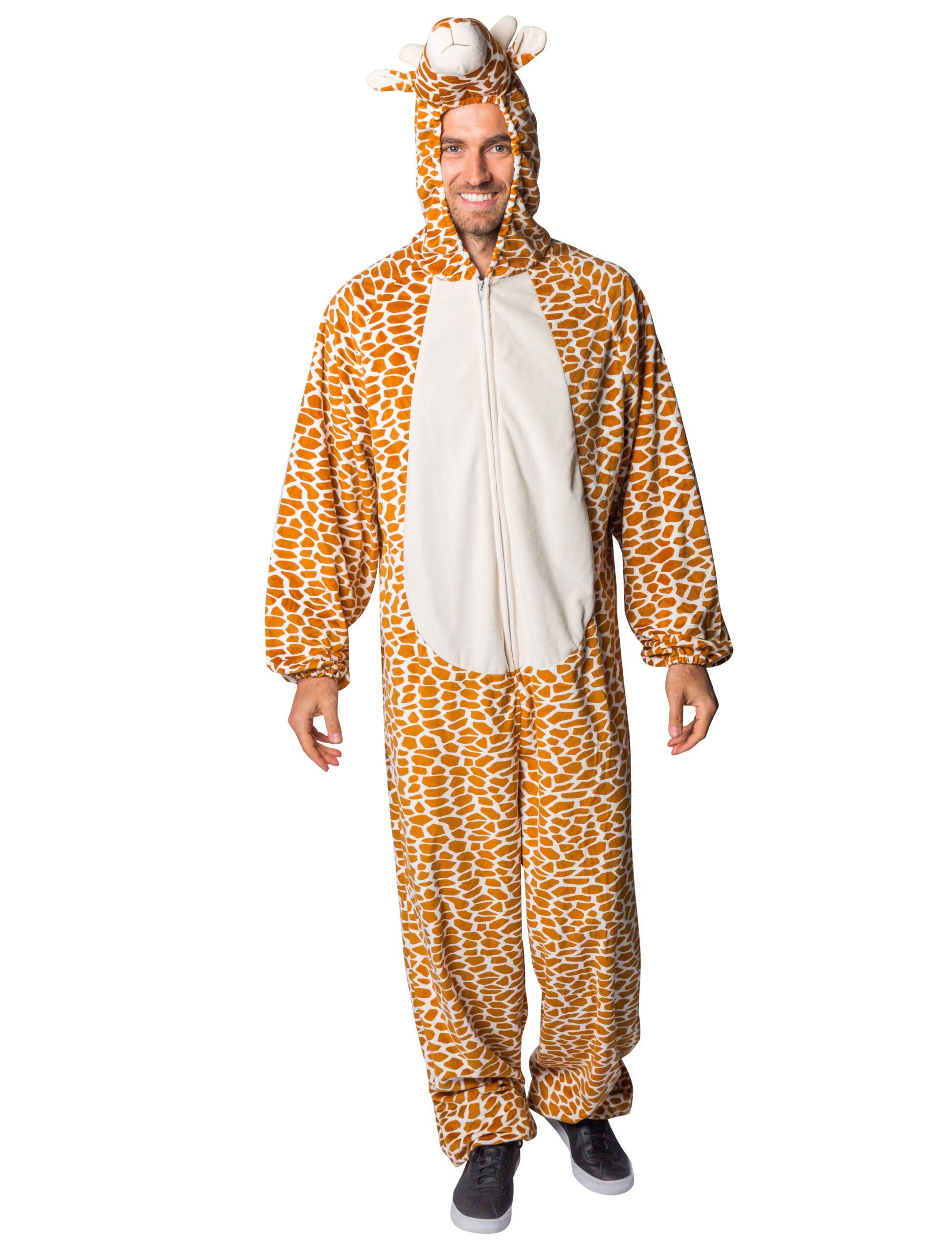 Bei Deinem Anblick werden nicht nur alle Savannenbewohner neidisch! Mit diesem trendigen Herren Overall mit Animal-Muster stiehlst Du garantiert allen die Show! Der hübsche Giraffen Overall für die Männer besteht aus einem Plüschstoff, der rundum mit Flecken besetzt ist, welche den charakteristischen Giraffen-Look ergeben. Der Bauchbereich ist durch einen beigen Ton optisch abgesetzt. Absolutes Highlight ist die Kapuze, welche mit einem auffälligen Giraffenkopf und Mähne geschmückt ist. Der Giraffenschwanz auf der Rückseite runden das Giraffen-Kostüm perfekt ab. Der Overall ist die perfekte Komplettlösung, denn Du benötigst keine anderen Kleidungsstücke und Accessoires mehr und siehst trotzdem rundum stimmig aus. Der Giraffen Overall eignet sich besonders gut für kalte Karnevalstage und hält Dich schön warm. Durch die passende Gesichtsschminke perfektionierst Du das Kostüm! Damit wirst Du allen einen langen Hals machen!