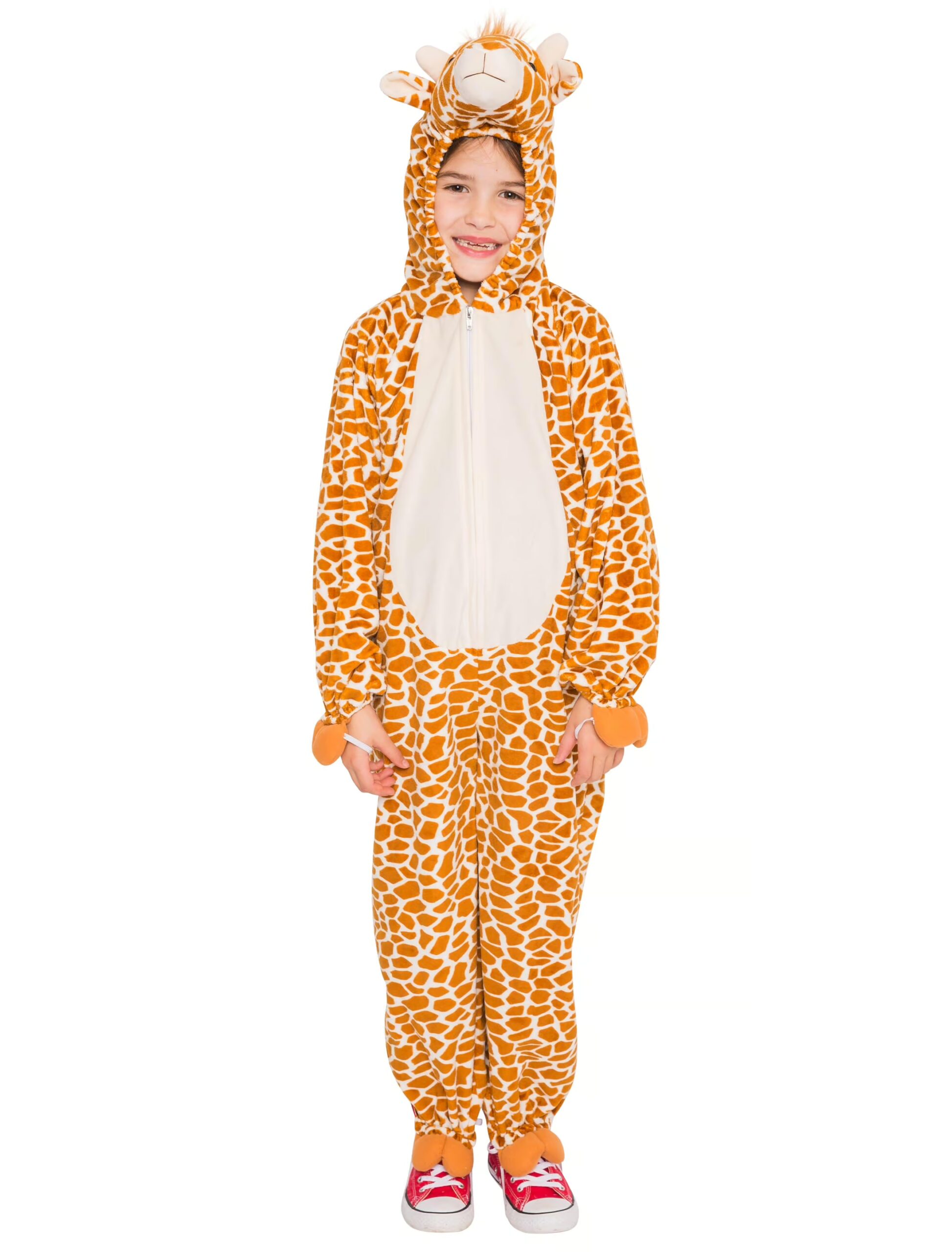 Immer schön den Überblick behalten! Mit diesem Giraffen Kinder Kostüm in Größe 98 bis 128 fühlst Du Dich gleich ein wenig größer und überblickst mühelos jede Karnevalsparty. Der Kinder Overall ist aus einem weißen, kuscheligen Stoff gefertigt, der rundum von braunen Giraffen-Flecken geziert wird. Der Bauchbereich besteht aus einem braunen Stoff, der sich toll vom Rest des Kostüms abhebt. Mit viel Liebe zum Detail wurde der Giraffen Kopf gefertigt, der sich auf der angenähten Kapuze befindet, und seinen Betrachter stets freundlich ansieht. Durch einen Reißverschluss in der Front ist das Kinder Kostüm bequem schließbar. Das perfekte Kostüm für Jungen und Mädchen, die es bequem, warm und auffällig mögen! Karneval kann kommen und wird garantiert tierisch schön!
